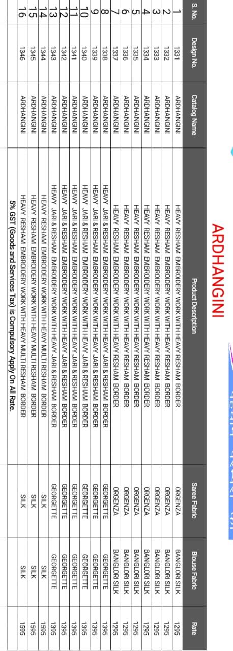 Brand - Naree. Type - Saree. Catlog name - AARDHNGINI. Set & Loose . Series -1331 to 1346. Delivery date - 09-08-18. Book your order Price list attached Gst extra Single available at extra 100 |