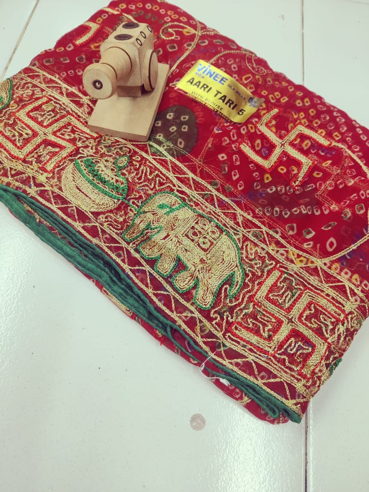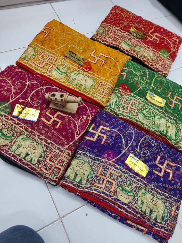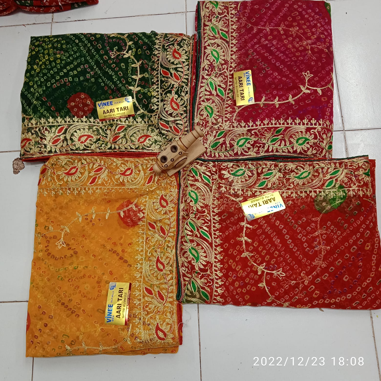 Buy Online Aari Tari Bandhej Saree 5 Pcs of Full Catalogue at Wholesale Price. Looking for Aari Tari Bandhej Saree Full Catalouge at Best Price? Buy Now Aari Tari Bandhej Saree at Wholesale Rate of Rs 2875 with Total 5 Pcs from authroized dealer and supplier of NITYA NX Brand. Cost of Each piece is just only Rs 575 which is very low and affordable price to resale the product in your retail store ,This is Surat based Wholesale Supplier & Dealer of NITYA NX Brand. Click on Brand name to Know more about NITYA NX Brand's products.Call or Whatsapp on 9898838984 for booking or enquiry