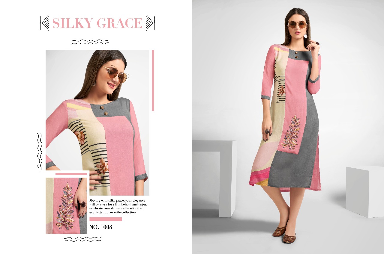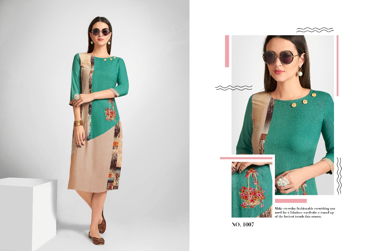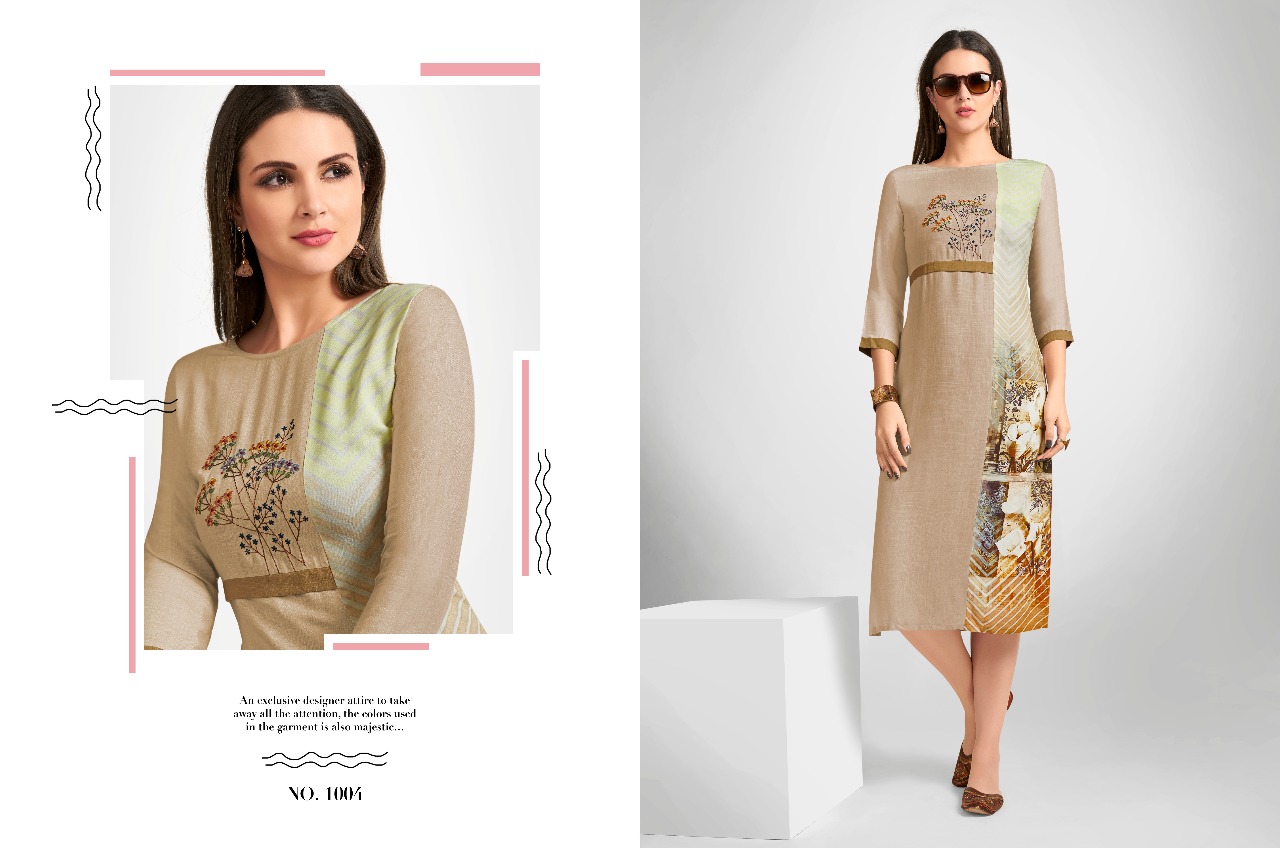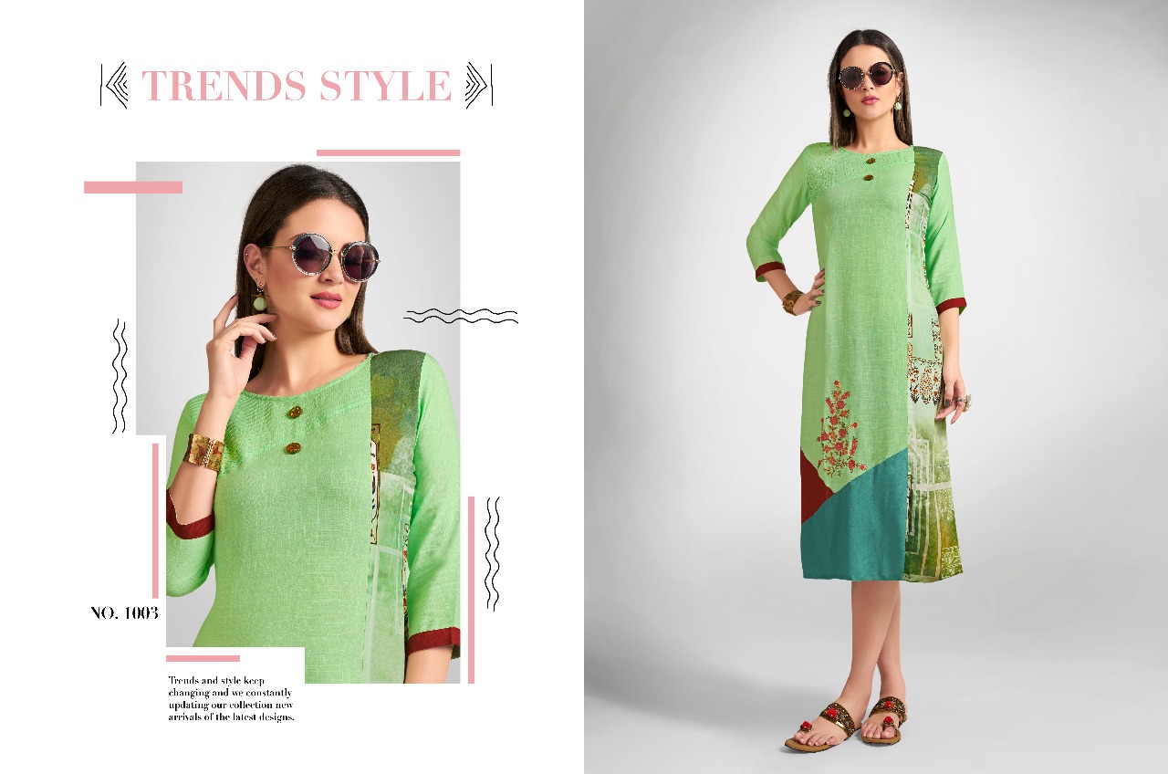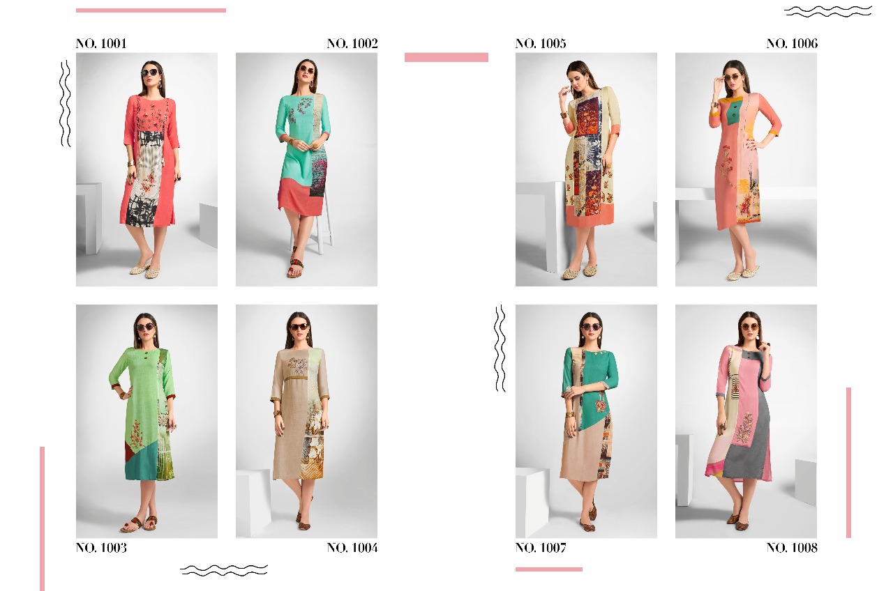 Buy Online Aarkhi 1001 Series Designer Reyon Slub Digital Printed Kurti Catlog Wholesaler And Supplier Surat 8 Pcs of Full Catalogue at Wholesale Price. Looking for Aarkhi 1001 Series Designer Reyon Slub Digital Printed Kurti Catlog Wholesaler And Supplier Surat Full Catalouge at Best Price? Buy Now Aarkhi 1001 Series Designer Reyon Slub Digital Printed Kurti Catlog Wholesaler And Supplier Surat at Wholesale Rate of Rs 5560 with Total 8 Pcs from authroized dealer and supplier of sa Brand. Cost of Each piece is just only Rs 695 which is very low and affordable price to resale the product in your retail store ,This is Surat based Wholesale Supplier & Dealer of sa Brand. Click on Brand name to Know more about sa Brand's products.Call or Whatsapp on 9898838984 for booking or enquiry