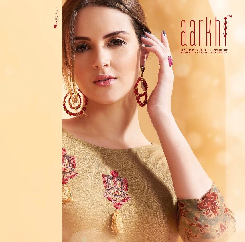 Aarkhi By Leo Reyon Slub Embroidered Designer Kurtis Wholesale Supplier And Dealer Surat