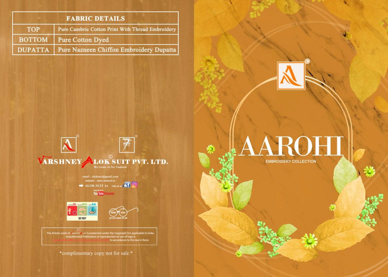 Buy Online Aarohi By Alok Suit Set And Singles Available Manufacturer Traders Surat Gujrat 10 Pcs of Full Catalogue at Wholesale Price. Looking for Aarohi By Alok Suit Set And Singles Available Manufacturer Traders Surat Gujrat Full Catalouge at Best Price? Buy Now Aarohi By Alok Suit Set And Singles Available Manufacturer Traders Surat Gujrat at Wholesale Rate of Rs 6250 with Total 10 Pcs from authroized dealer and supplier of Brand. Cost of Each piece is just only Rs 625 which is very low and affordable price to resale the product in your retail store ,This is Surat based Wholesale Supplier & Dealer of Brand. Click on Brand name to Know more about Brand's products.Call or Whatsapp on 9898838984 for booking or enquiry
