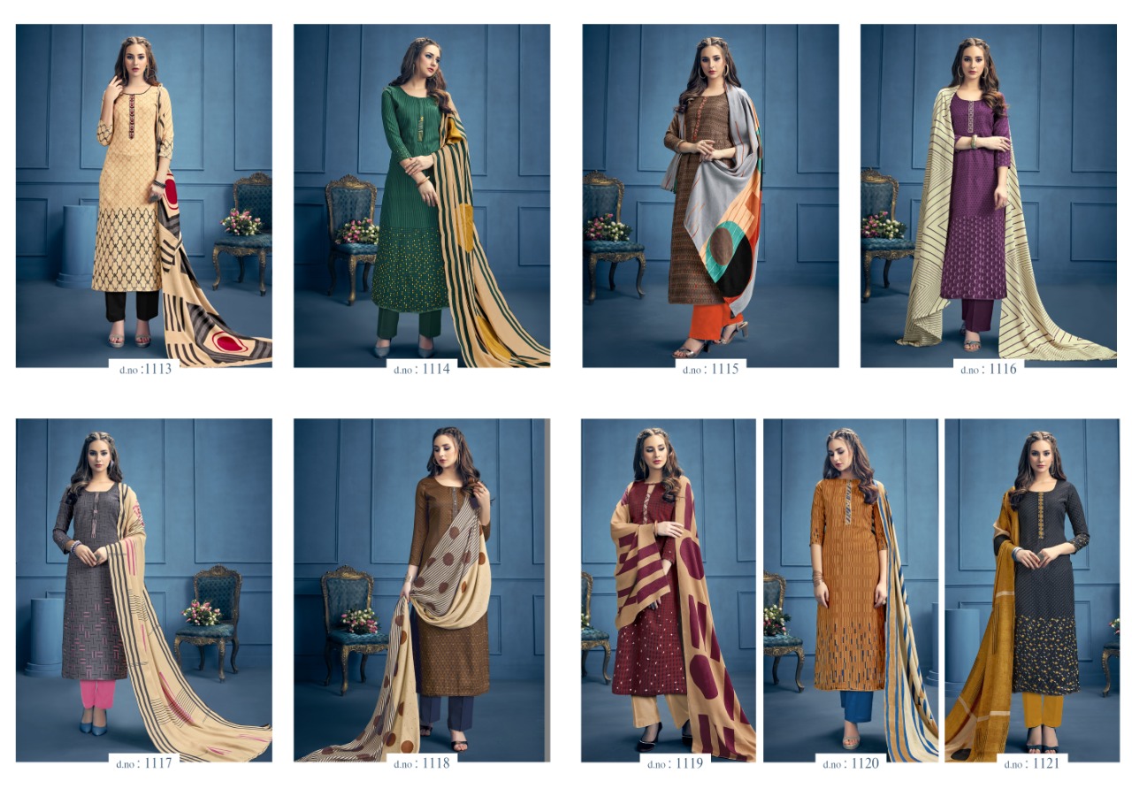 Buy Online Aarohi By Kalyan Prints 1113 Series Fancy Pure Pashmina Printed Salwar Kameez Catlog Wholesaler Surat 9 Pcs of Full Catalogue at Wholesale Price. Looking for Aarohi By Kalyan Prints 1113 Series Fancy Pure Pashmina Printed Salwar Kameez Catlog Wholesaler Surat Full Catalouge at Best Price? Buy Now Aarohi By Kalyan Prints 1113 Series Fancy Pure Pashmina Printed Salwar Kameez Catlog Wholesaler Surat at Wholesale Rate of Rs 5175 with Total 9 Pcs from authroized dealer and supplier of Kalyan prints Brand. Cost of Each piece is just only Rs 575 which is very low and affordable price to resale the product in your retail store ,This is Surat based Wholesale Supplier & Dealer of Kalyan prints Brand. Click on Brand name to Know more about Kalyan prints Brand's products.Call or Whatsapp on 9898838984 for booking or enquiry