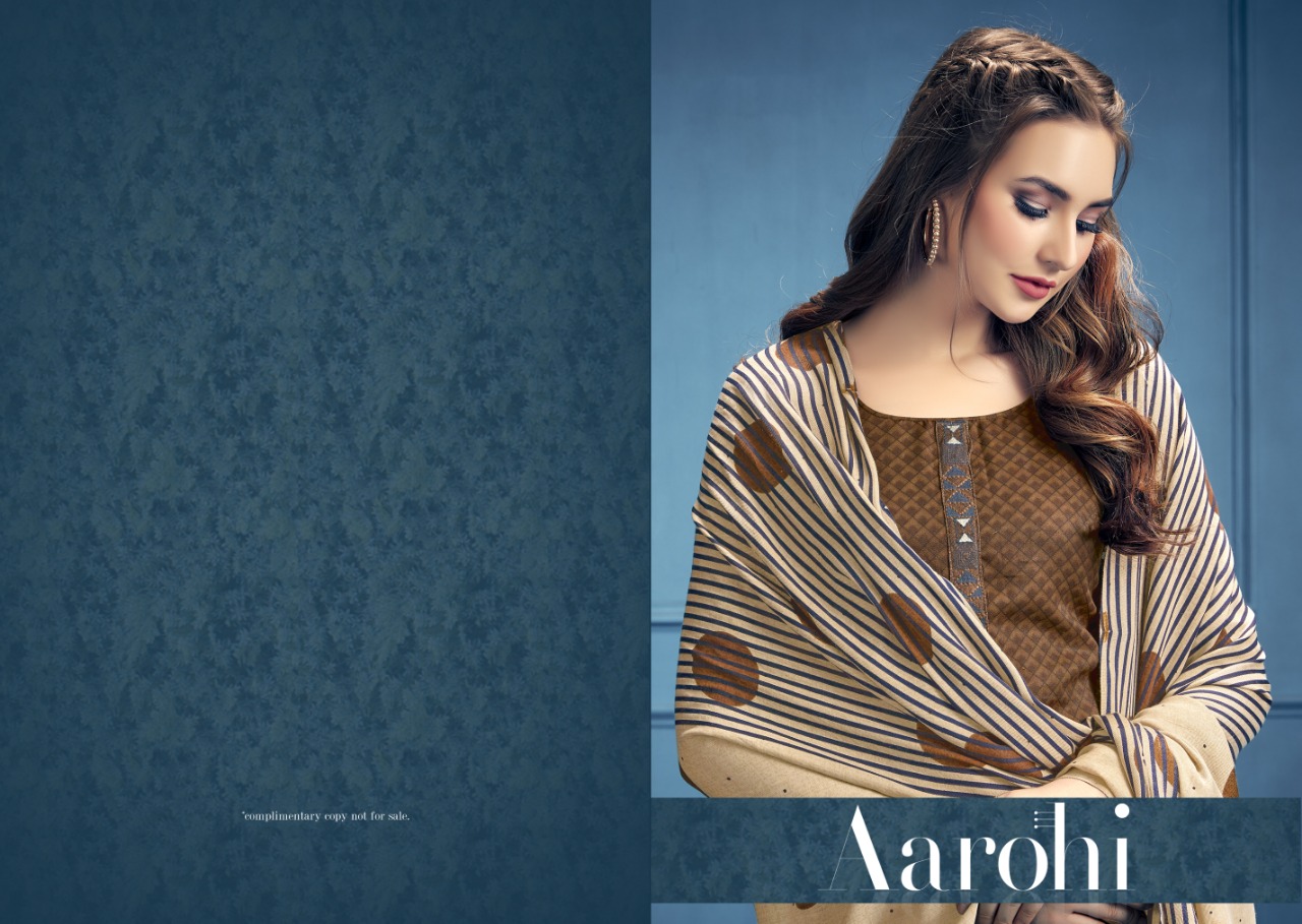 "Here we introduce our new exclusive Brand *""* And with the new brand we also launch fabulous collection *..." AAROHI*"...*a winter collection catalog ..... Fabric Details:- ? Top :- *Pure Pashmina Print with embroidery 2.50 Mtr app* ? Bot :- Pure Pashmina twill cut :- 3.00 Mtr appox ??Dup : Pure pashmina shawl print cut app 2.25 mtr * RATE* :- 5?7?5? + *G.S.T* DISPATCH- 0?1?Dec. Have a look to this awesome catalogue & book your orders...and hope u always with us. Always with you.... Regars *KALYAN PRINTS* Set to set |