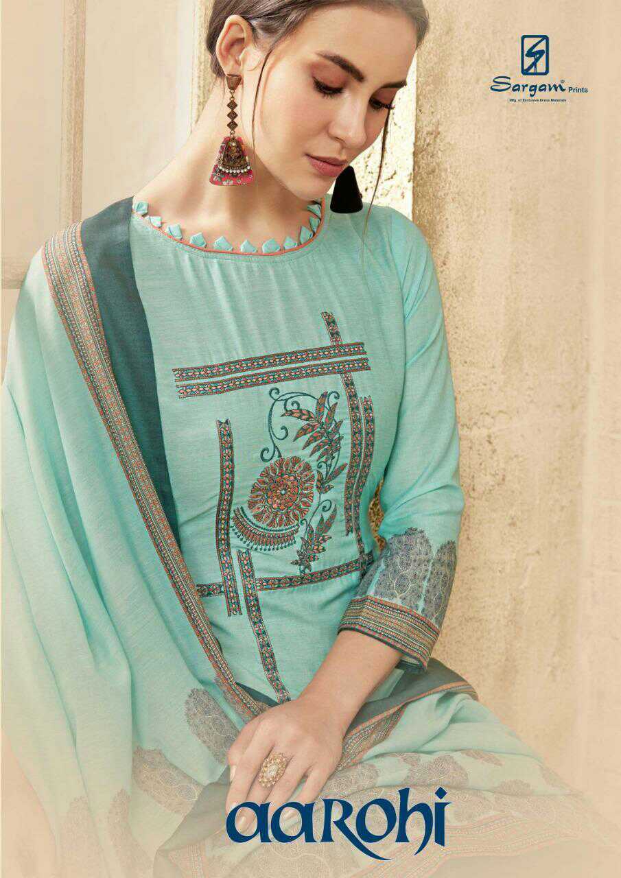 Buy Online Aarohi By Sargam Prints Musline Printed With Work Suits Wholesale Supplier Surat 8 Pcs of Full Catalogue at Wholesale Price. Looking for Aarohi By Sargam Prints Musline Printed With Work Suits Wholesale Supplier Surat Full Catalouge at Best Price? Buy Now Aarohi By Sargam Prints Musline Printed With Work Suits Wholesale Supplier Surat at Wholesale Rate of Rs 8600 with Total 8 Pcs from authroized dealer and supplier of SARGAM PRINTS Brand. Cost of Each piece is just only Rs 1075 which is very low and affordable price to resale the product in your retail store ,This is Surat based Wholesale Supplier & Dealer of SARGAM PRINTS Brand. Click on Brand name to Know more about SARGAM PRINTS Brand's products.Call or Whatsapp on 9898838984 for booking or enquiry