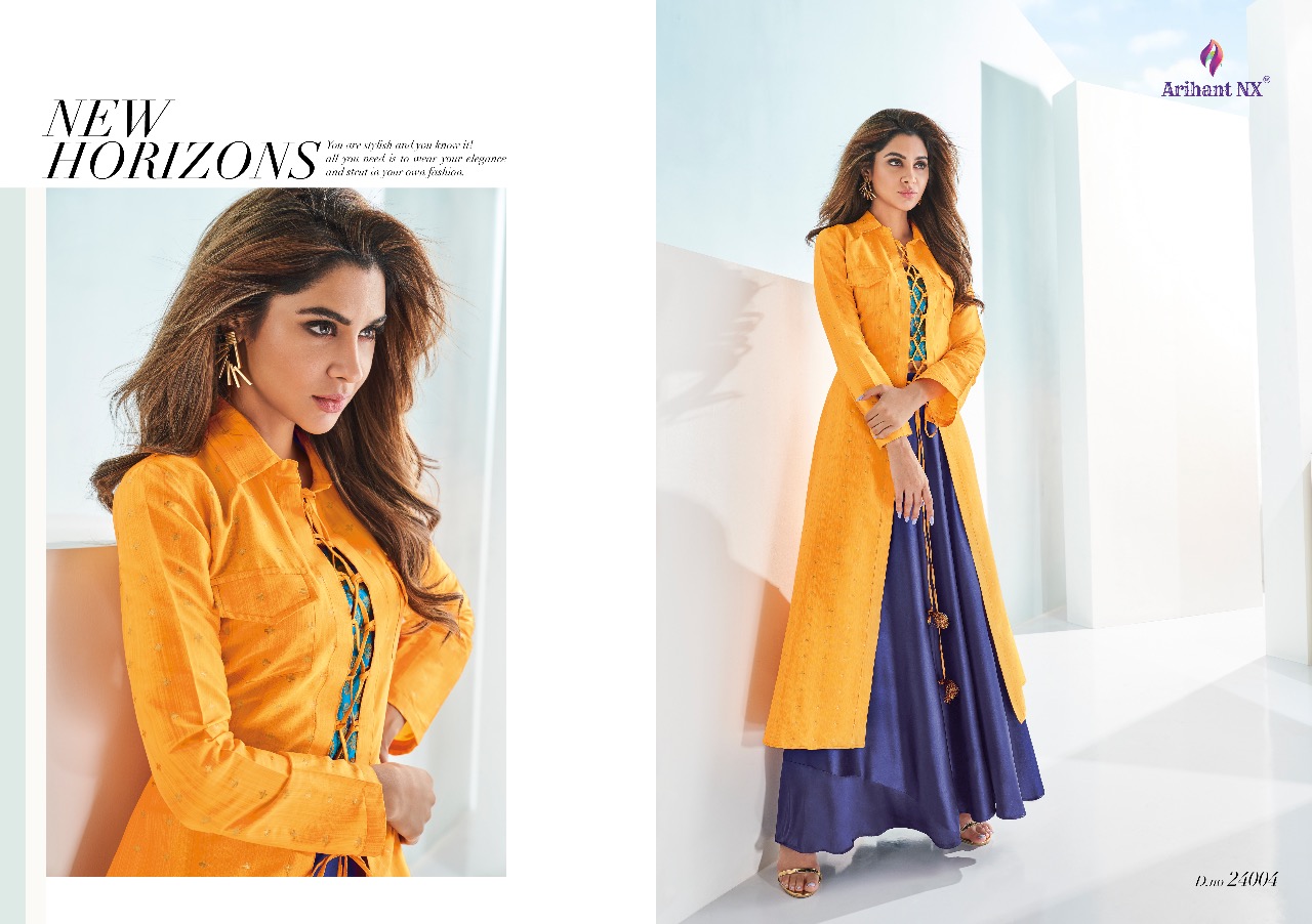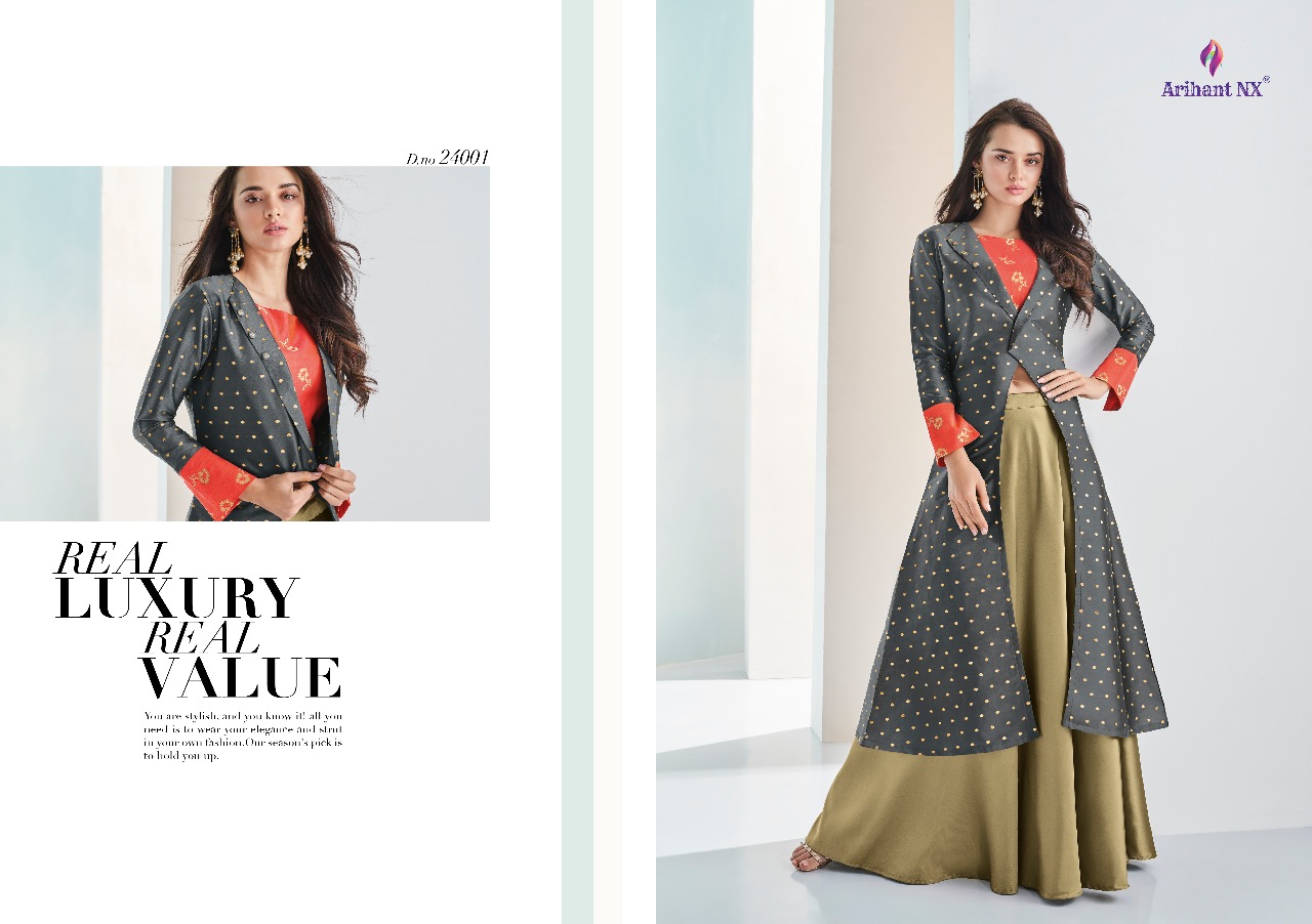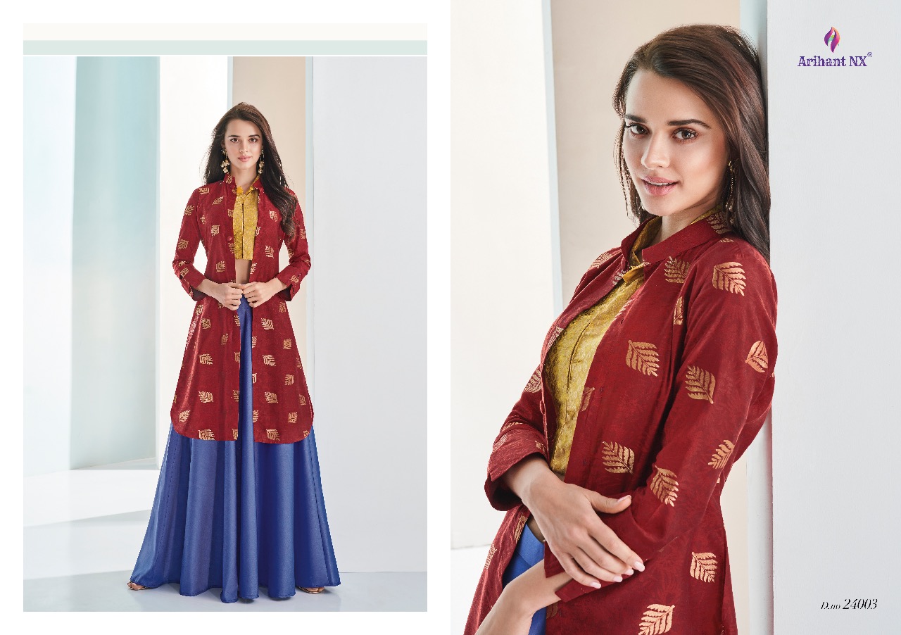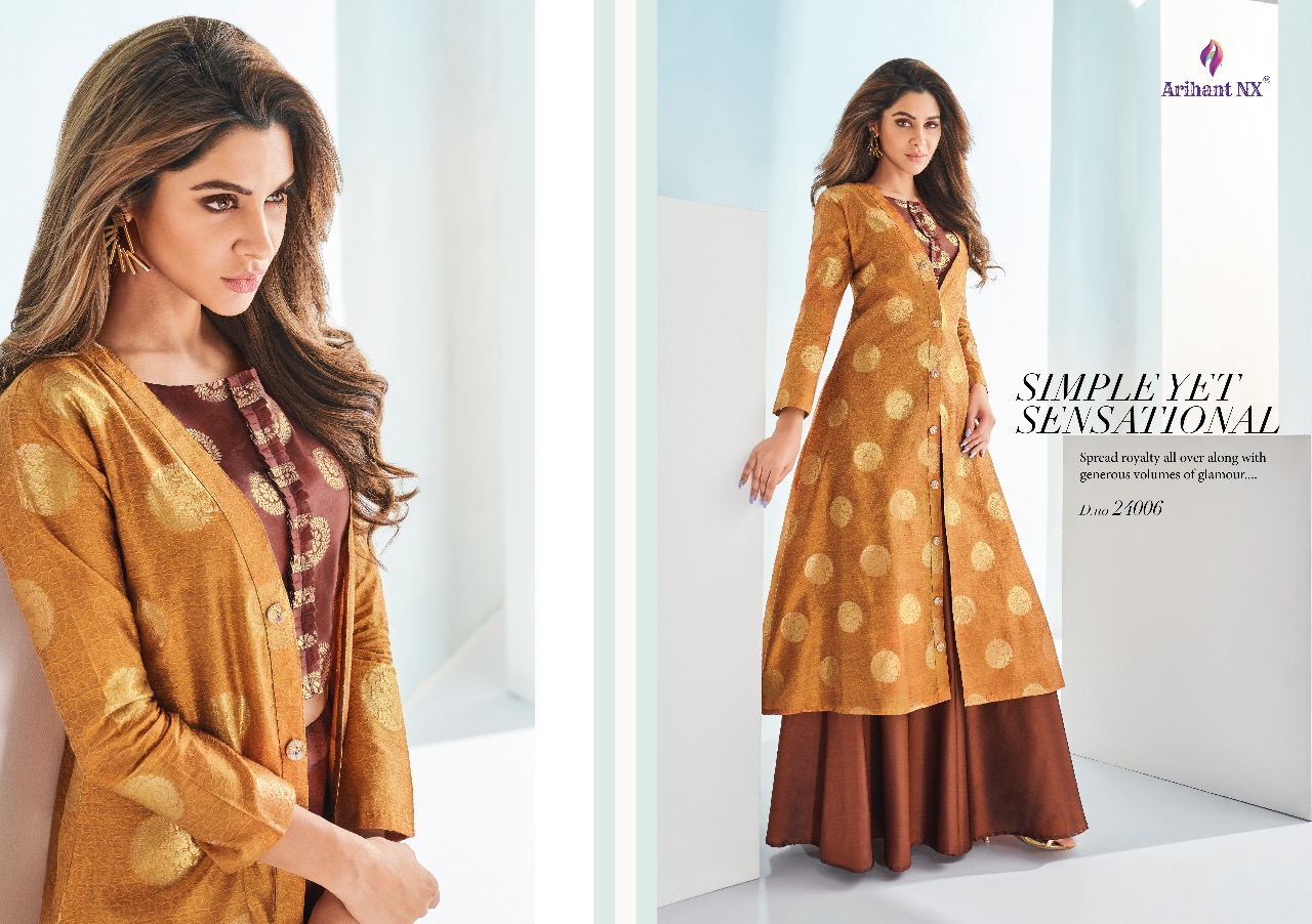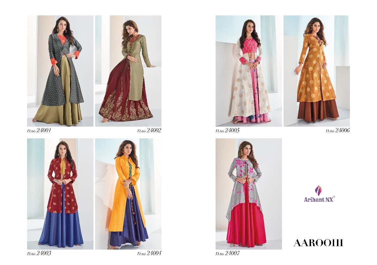 Buy Online Aaroohi By Arihant Nx 24001 Series Designer Party Wear Gown Collection Wholesaler Surat 7 Pcs of Full Catalogue at Wholesale Price. Looking for Aaroohi By Arihant Nx 24001 Series Designer Party Wear Gown Collection Wholesaler Surat Full Catalouge at Best Price? Buy Now Aaroohi By Arihant Nx 24001 Series Designer Party Wear Gown Collection Wholesaler Surat at Wholesale Rate of Rs 6993 with Total 7 Pcs from authroized dealer and supplier of ARIHANT NX Brand. Cost of Each piece is just only Rs 999 which is very low and affordable price to resale the product in your retail store ,This is Surat based Wholesale Supplier & Dealer of ARIHANT NX Brand. Click on Brand name to Know more about ARIHANT NX Brand's products.Call or Whatsapp on 9898838984 for booking or enquiry