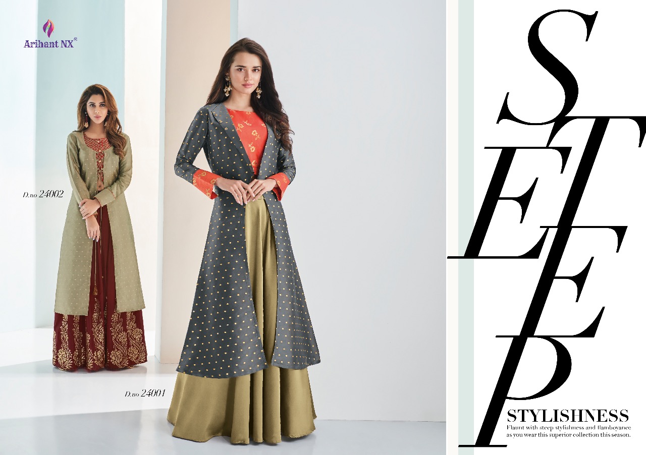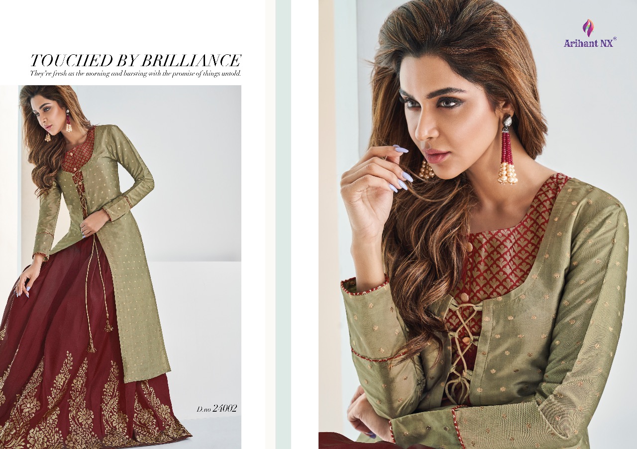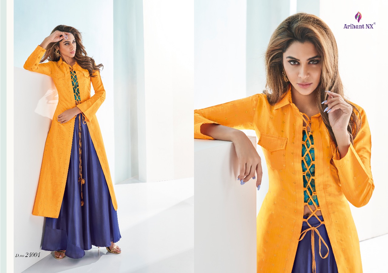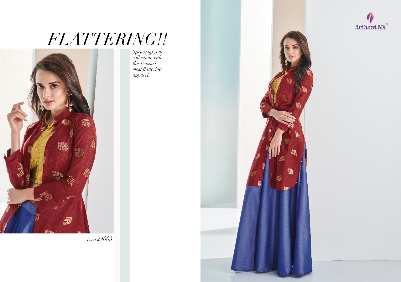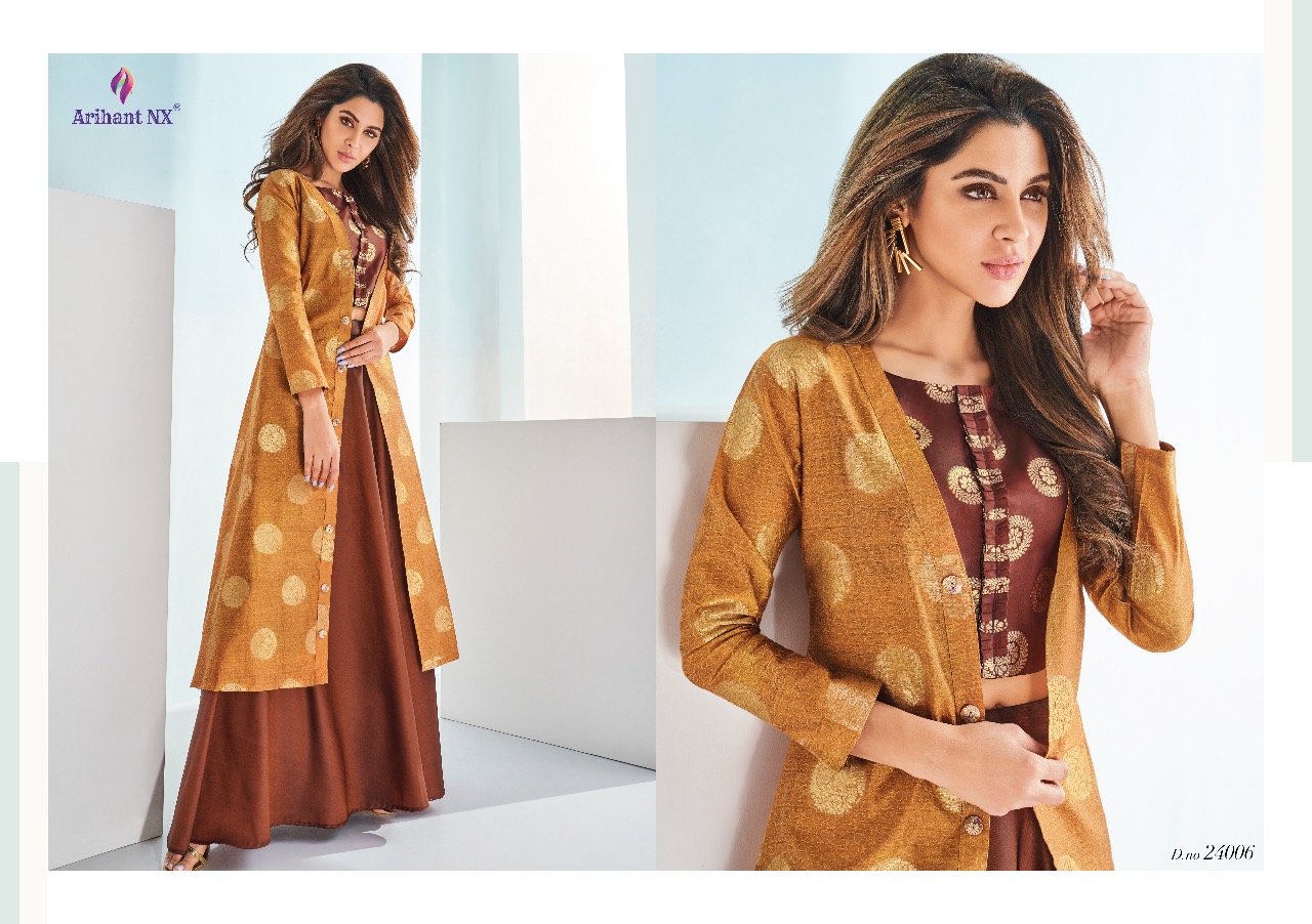 Buy Online Aaroohi By Arihant Nx 24001 Series Designer Party Wear Gown Collection Wholesaler Surat 7 Pcs of Full Catalogue at Wholesale Price. Looking for Aaroohi By Arihant Nx 24001 Series Designer Party Wear Gown Collection Wholesaler Surat Full Catalouge at Best Price? Buy Now Aaroohi By Arihant Nx 24001 Series Designer Party Wear Gown Collection Wholesaler Surat at Wholesale Rate of Rs 6993 with Total 7 Pcs from authroized dealer and supplier of ARIHANT NX Brand. Cost of Each piece is just only Rs 999 which is very low and affordable price to resale the product in your retail store ,This is Surat based Wholesale Supplier & Dealer of ARIHANT NX Brand. Click on Brand name to Know more about ARIHANT NX Brand's products.Call or Whatsapp on 9898838984 for booking or enquiry