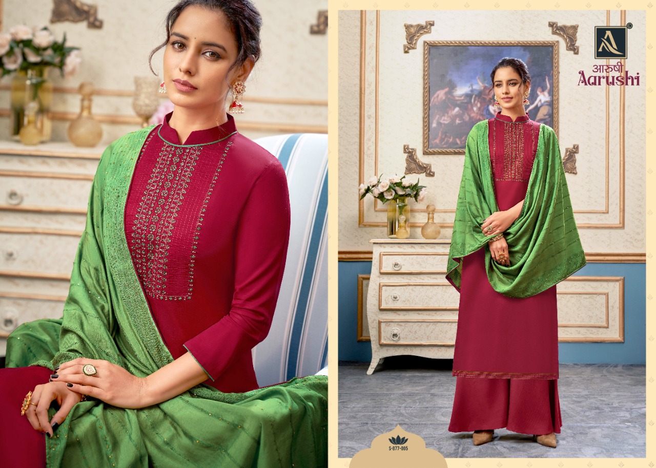 Buy Online Aarushi By Alok Suit Wholesale Supplier Traders In Surat 8 Pcs of Full Catalogue at Wholesale Price. Looking for Aarushi By Alok Suit Wholesale Supplier Traders In Surat Full Catalouge at Best Price? Buy Now Aarushi By Alok Suit Wholesale Supplier Traders In Surat at Wholesale Rate of Rs 6008 with Total 8 Pcs from authroized dealer and supplier of ALOK SUIT Brand. Cost of Each piece is just only Rs 751 which is very low and affordable price to resale the product in your retail store ,This is Surat based Wholesale Supplier & Dealer of ALOK SUIT Brand. Click on Brand name to Know more about ALOK SUIT Brand's products.Call or Whatsapp on 9898838984 for booking or enquiry