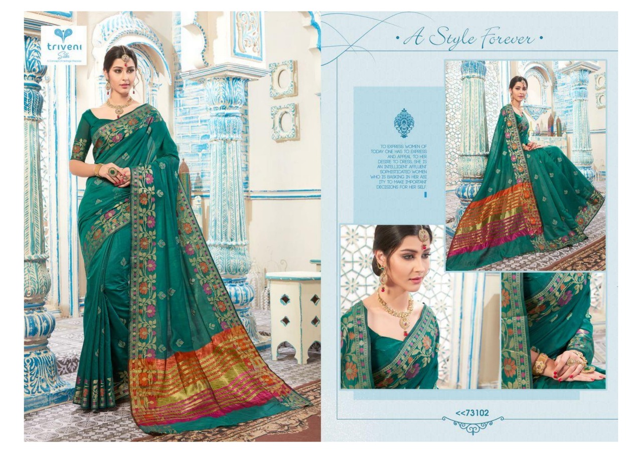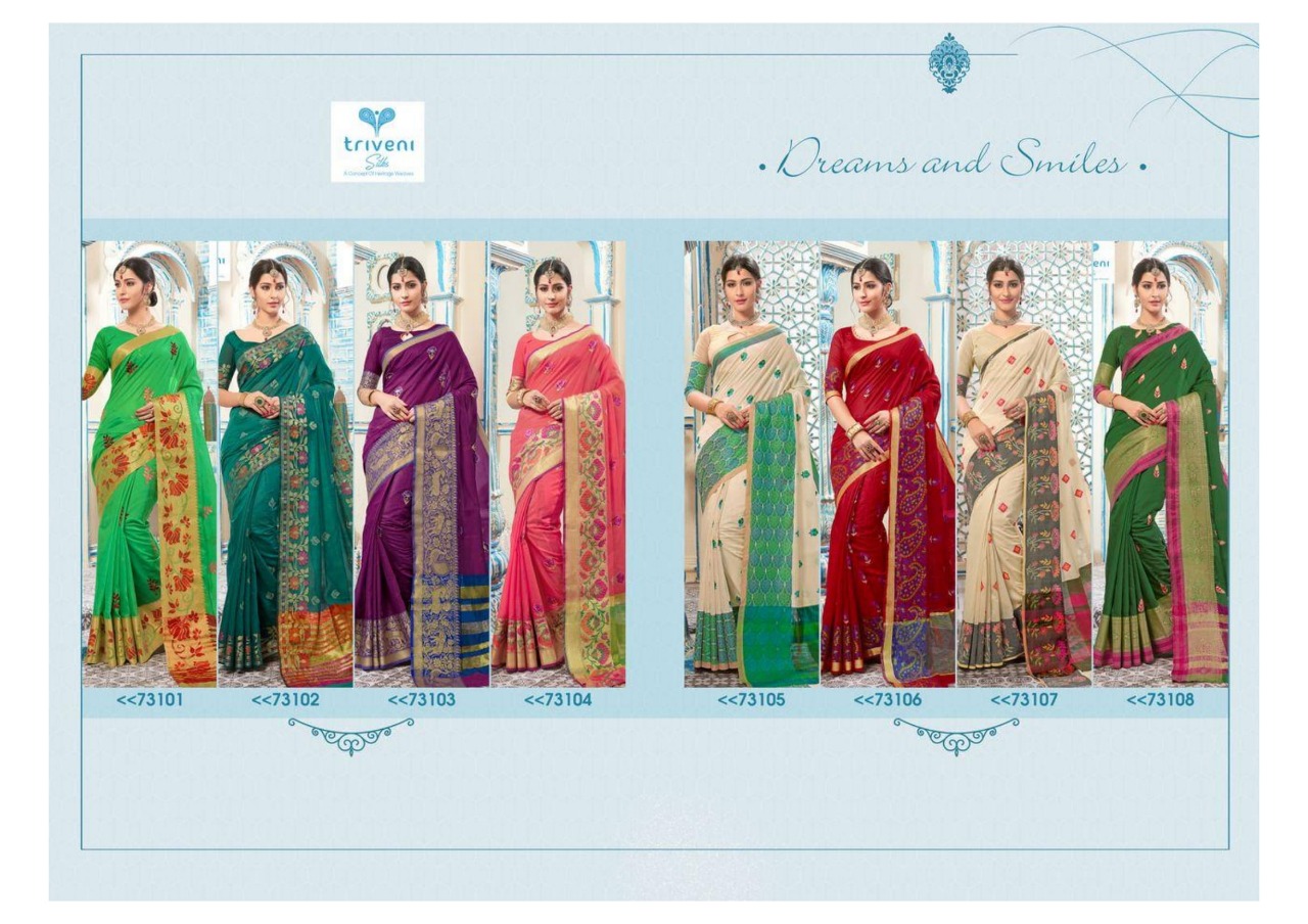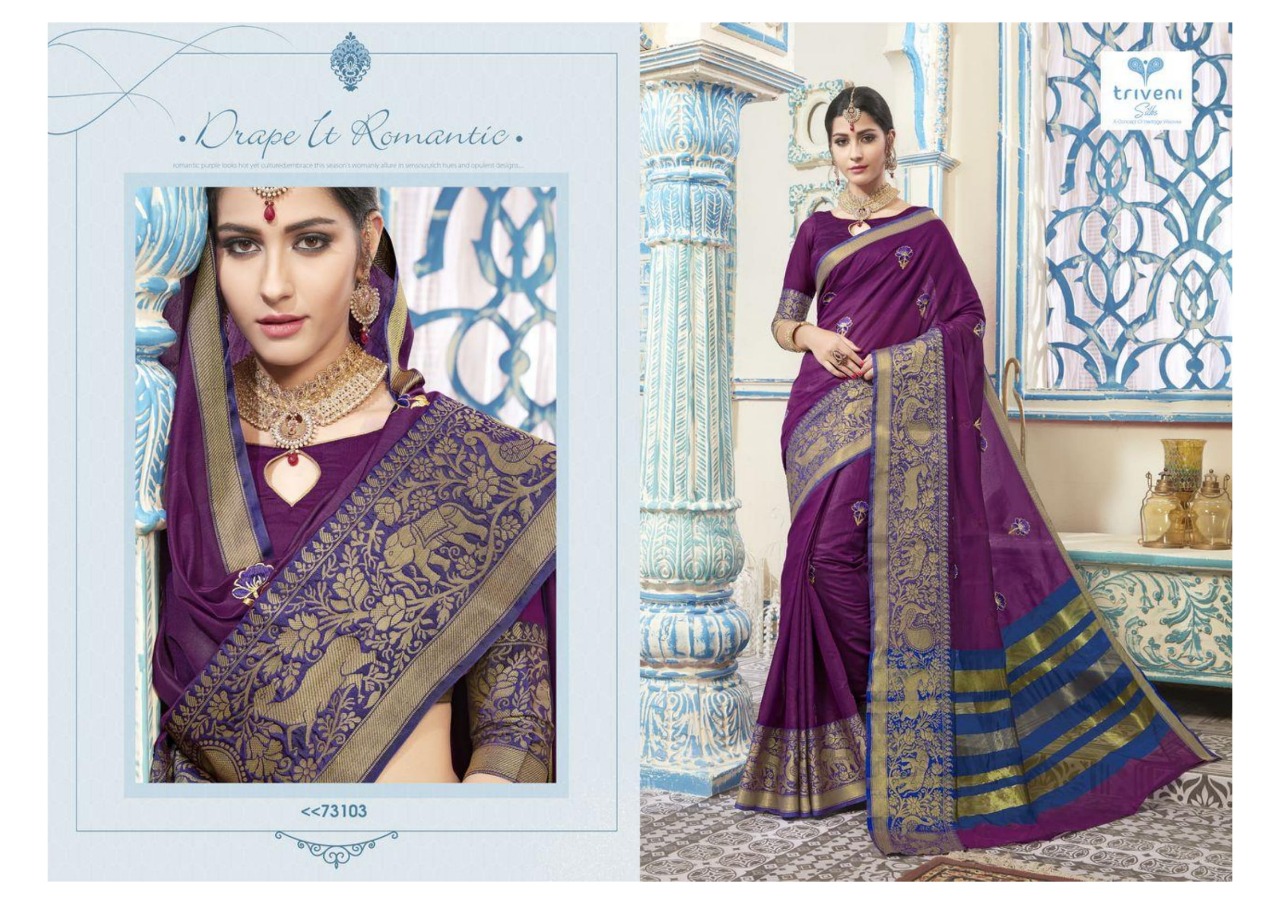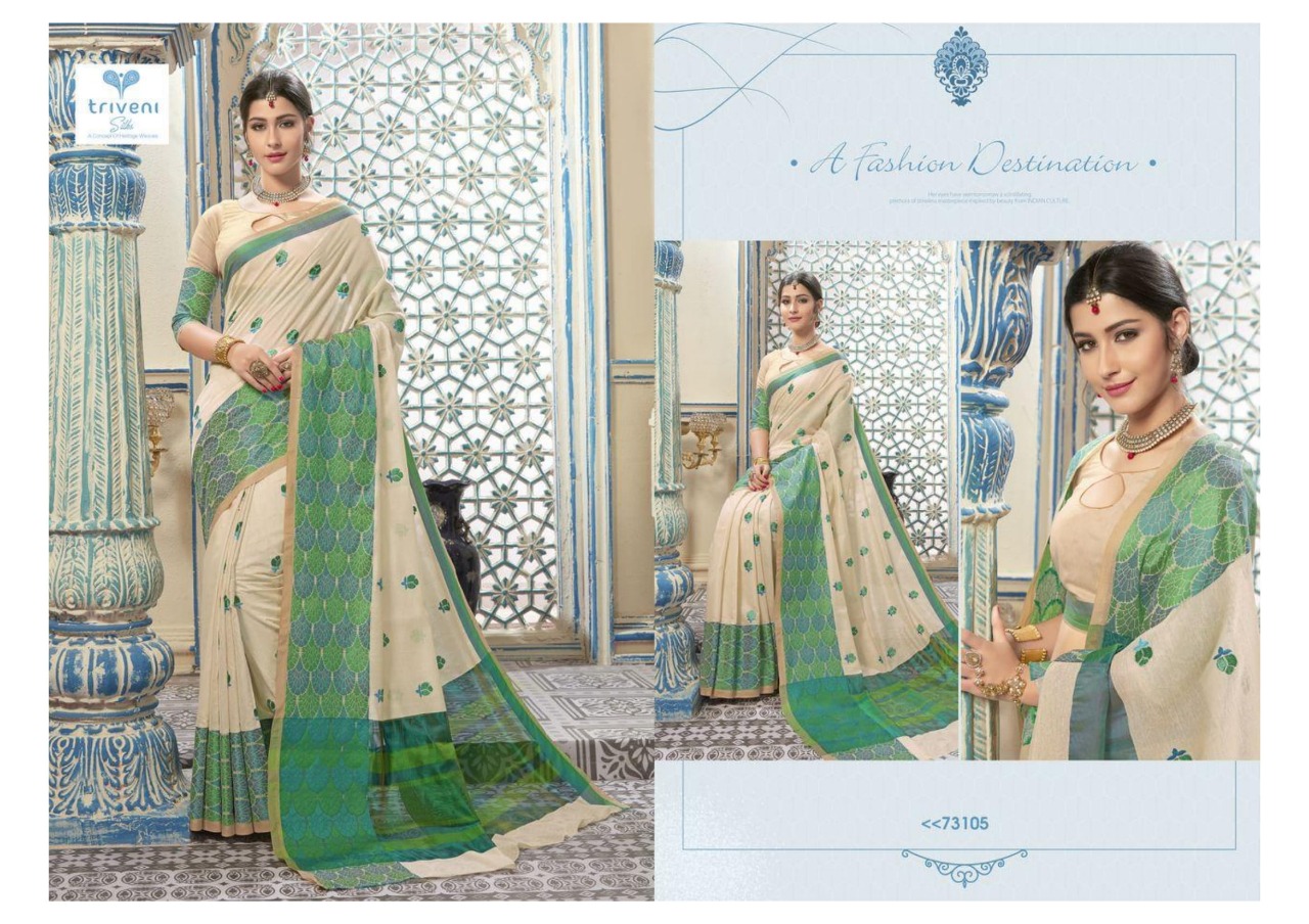 Buy Online Aarvi By Triveni 73101 Series Fancy Designer Kota Embroidery Saree Collection Wholesaler Surat 8 Pcs of Full Catalogue at Wholesale Price. Looking for Aarvi By Triveni 73101 Series Fancy Designer Kota Embroidery Saree Collection Wholesaler Surat Full Catalouge at Best Price? Buy Now Aarvi By Triveni 73101 Series Fancy Designer Kota Embroidery Saree Collection Wholesaler Surat at Wholesale Rate of Rs 7128 with Total 8 Pcs from authroized dealer and supplier of TRIVENI Brand. Cost of Each piece is just only Rs 891 which is very low and affordable price to resale the product in your retail store ,This is Surat based Wholesale Supplier & Dealer of TRIVENI Brand. Click on Brand name to Know more about TRIVENI Brand's products.Call or Whatsapp on 9898838984 for booking or enquiry