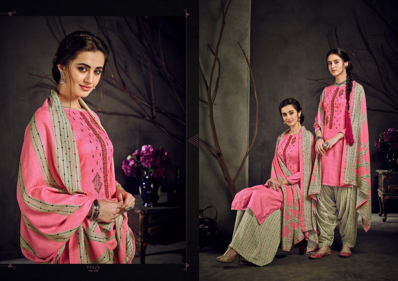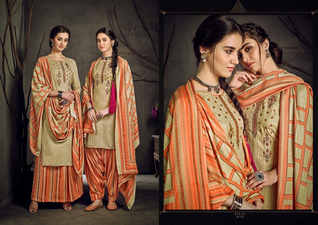 SARGAM PRINTS Present ***AARZU VOL-2*** *?Fabric Details?* *Top:* PURE PASHMINA NEGATIVE WITH DESIGNER WORK *Bottom:* PURE PASHMINA PRINTED *Dupatta:* SHAWL PRINTED(BOX) *Designs:* 8 PCS *Rate :* 695? per Pcs . Set To Set . GST 5 Percent Extra. Delivery 2 days |