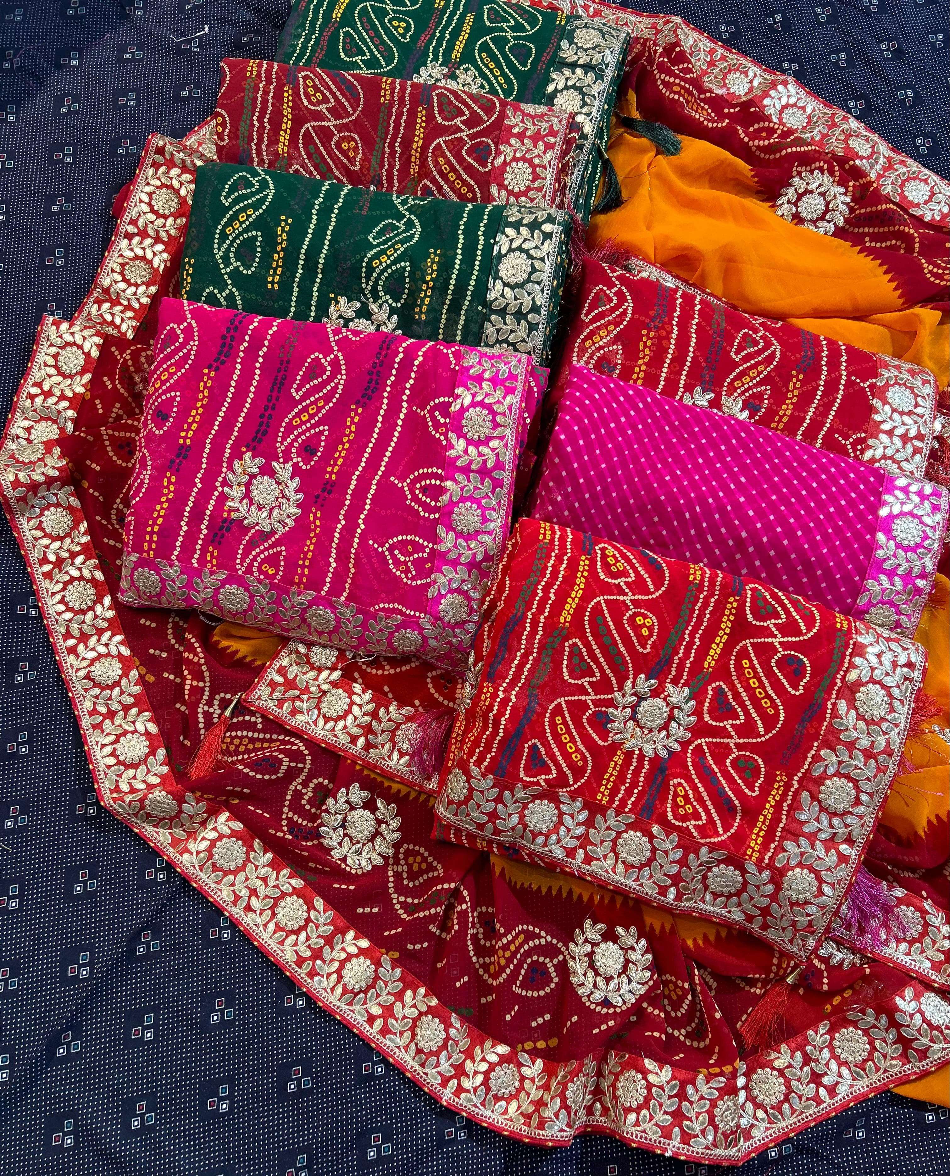 Brand - Jalnidhi *HEAVY FINISHING GOTTA WORK SAREE WITH HEAVY WORK IN SAREE* *BRAND NAME* - *JALNIDHI* *CATLOG NAME* -. *AASHIMA 8*✅ PCS. -. *8 PCS* Rate - *990/-* Serise - *16801 To 16808* FABRICS. -. *HEAVY C*C GORGET*😍 BLOUSE - *SAME AS SAREE* Gst 5℅ Extra Single available Book your order now |