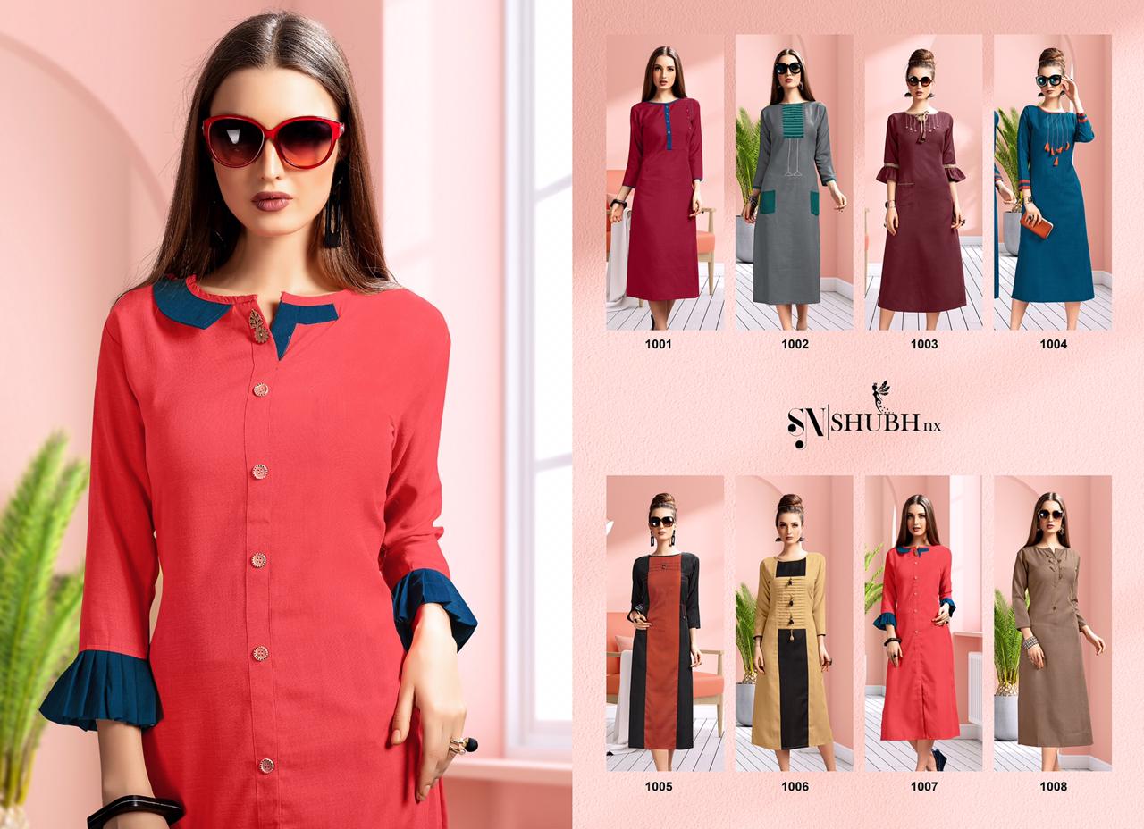 Buy Online Aashiqui Vol 1 By Shubh Nx Reyon Kurtis Wholesale Supplier And Dealer Surat 8 Pcs of Full Catalogue at Wholesale Price. Looking for Aashiqui Vol 1 By Shubh Nx Reyon Kurtis Wholesale Supplier And Dealer Surat Full Catalouge at Best Price? Buy Now Aashiqui Vol 1 By Shubh Nx Reyon Kurtis Wholesale Supplier And Dealer Surat at Wholesale Rate of Rs 3160 with Total 8 Pcs from authroized dealer and supplier of Jinesh nx Brand. Cost of Each piece is just only Rs 395 which is very low and affordable price to resale the product in your retail store ,This is Surat based Wholesale Supplier & Dealer of Jinesh nx Brand. Click on Brand name to Know more about Jinesh nx Brand's products.Call or Whatsapp on 9898838984 for booking or enquiry