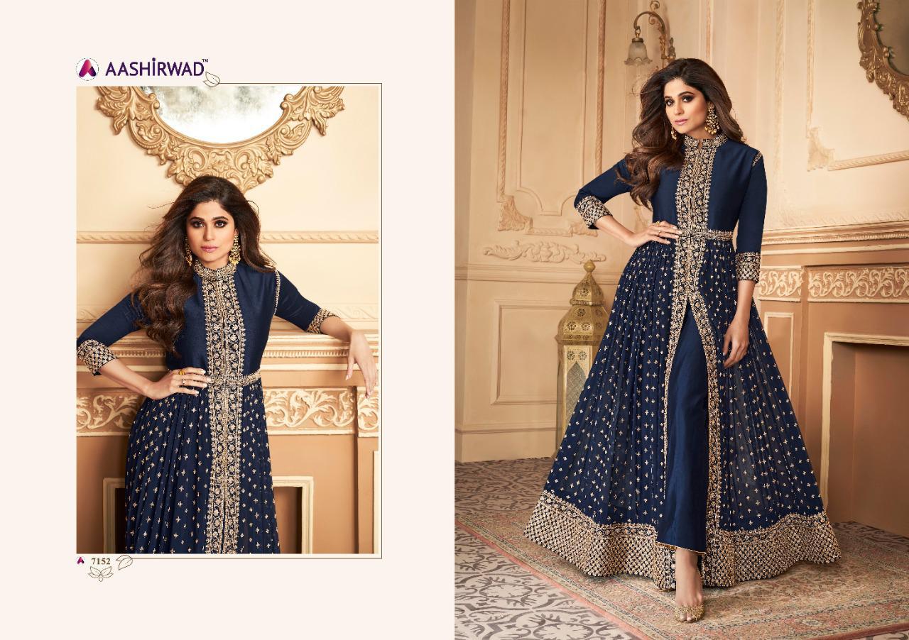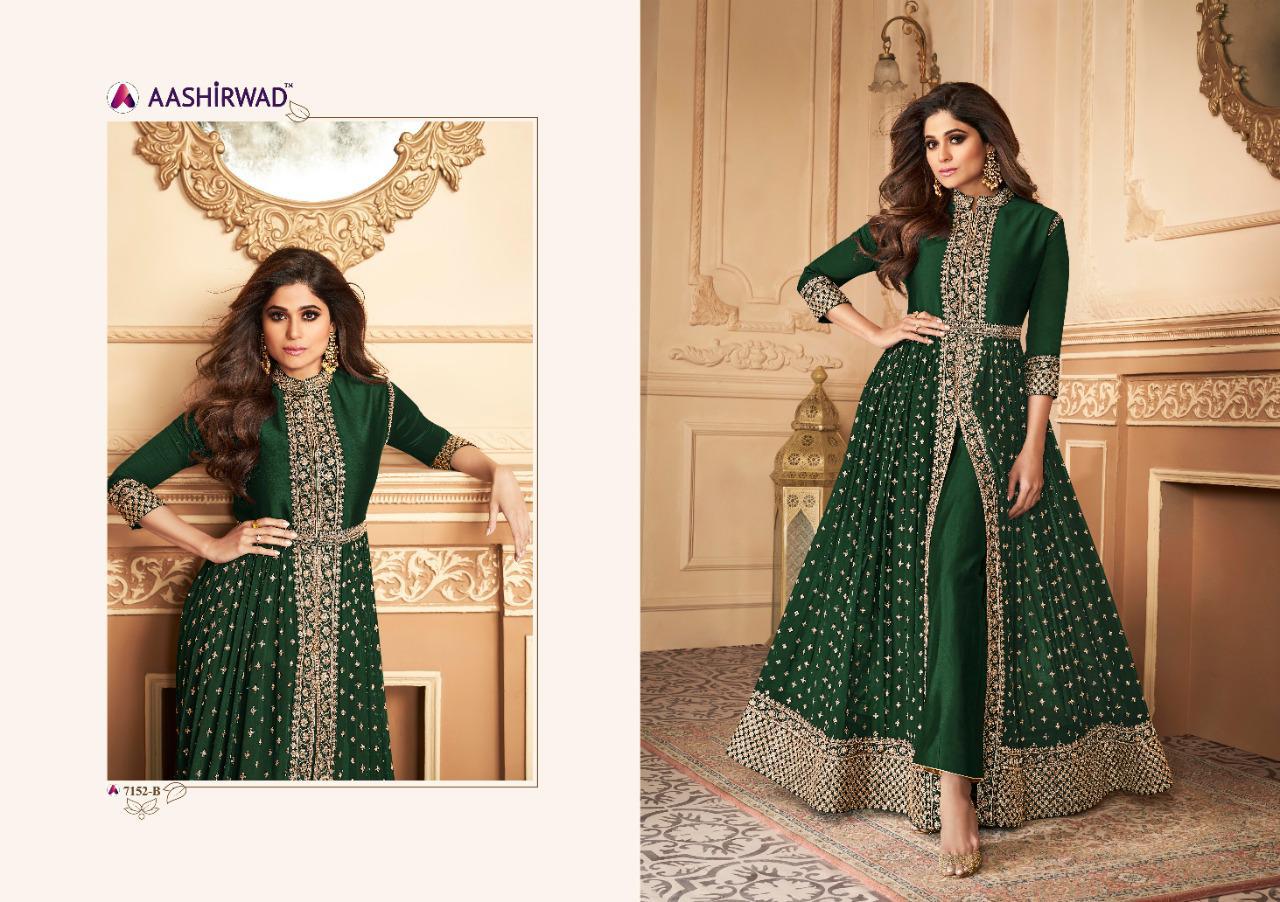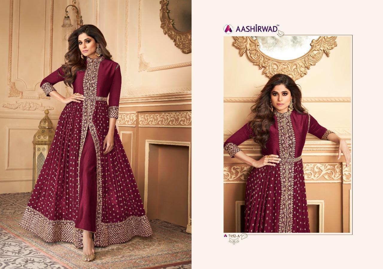 Buy Online Aashirwad Anokhi Series 7152 Designer Party Wear Suits Wholesale Supplier Gujarat 5 Pcs of Full Catalogue at Wholesale Price. Looking for Aashirwad Anokhi Series 7152 Designer Party Wear Suits Wholesale Supplier Gujarat Full Catalouge at Best Price? Buy Now Aashirwad Anokhi Series 7152 Designer Party Wear Suits Wholesale Supplier Gujarat at Wholesale Rate of Rs 10975 with Total 5 Pcs from authroized dealer and supplier of AASHIRWAD Brand. Cost of Each piece is just only Rs 2195 which is very low and affordable price to resale the product in your retail store ,This is Surat based Wholesale Supplier & Dealer of AASHIRWAD Brand. Click on Brand name to Know more about AASHIRWAD Brand's products.Call or Whatsapp on 9898838984 for booking or enquiry