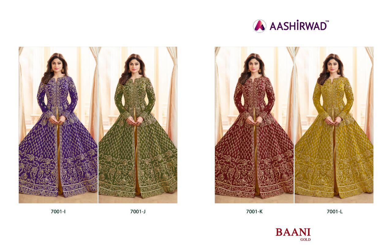 Aashirwad Bani Gold 7001 New Colours Designer Party Wear Suits Wholesale Supplier Gujarat