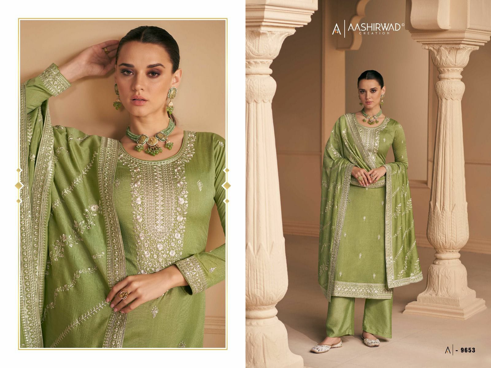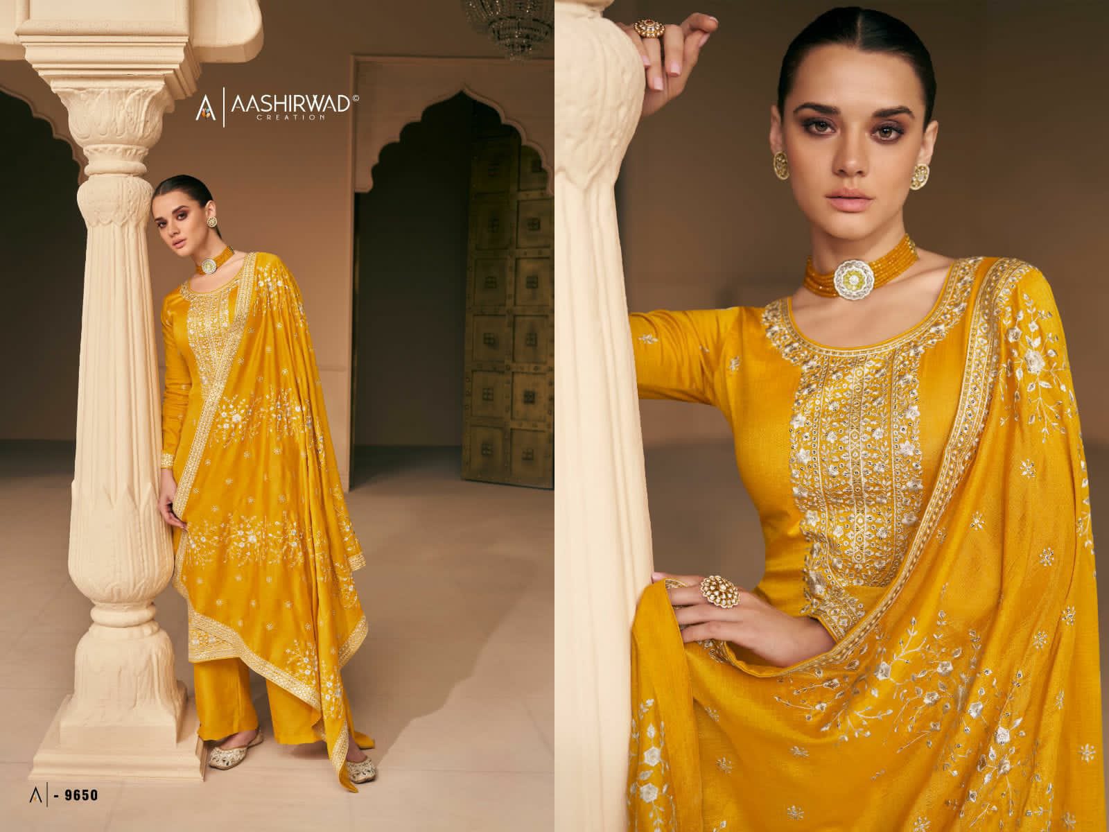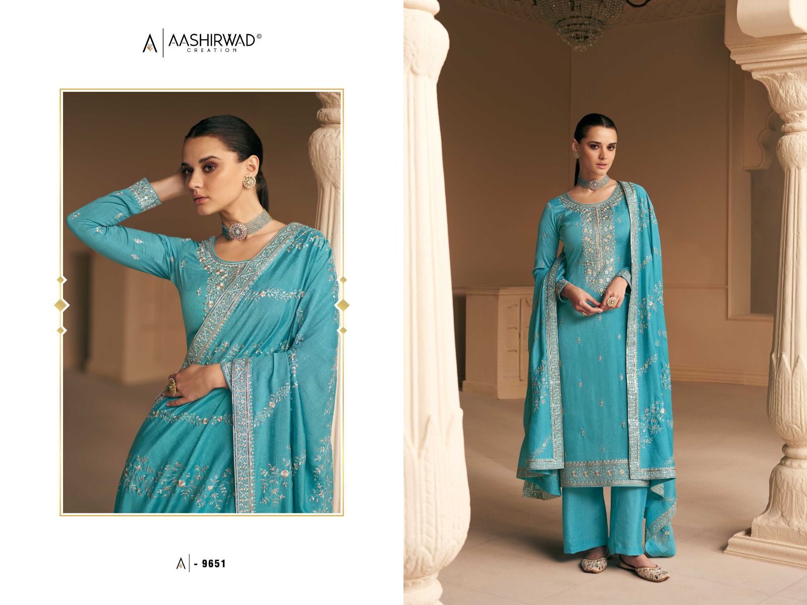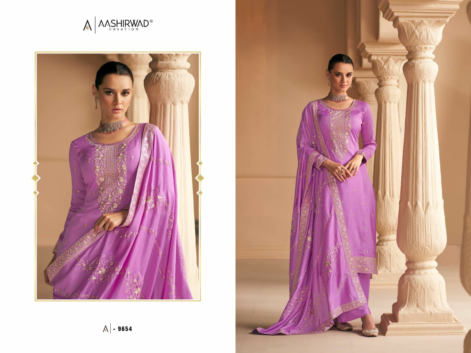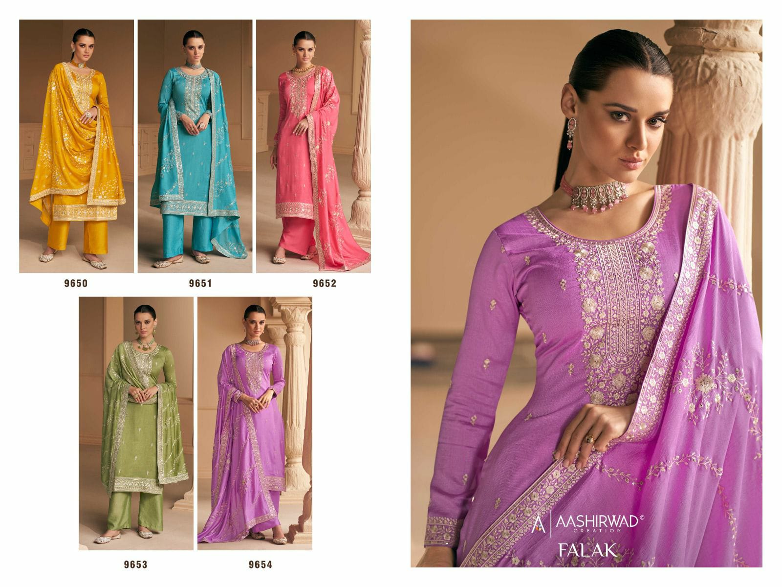 Buy Online Aashirwad Creation Falak Premium Silk Designer Suit 5 Pcs of Full Catalogue at Wholesale Price. Looking for Aashirwad Creation Falak Premium Silk Designer Suit Full Catalouge at Best Price? Buy Now Aashirwad Creation Falak Premium Silk Designer Suit at Wholesale Rate of Rs 8995 with Total 5 Pcs from authroized dealer and supplier of AASHIRWAD Brand. Cost of Each piece is just only Rs 1799 which is very low and affordable price to resale the product in your retail store ,This is Surat based Wholesale Supplier & Dealer of AASHIRWAD Brand. Click on Brand name to Know more about AASHIRWAD Brand's products.Call or Whatsapp on 9898838984 for booking or enquiry