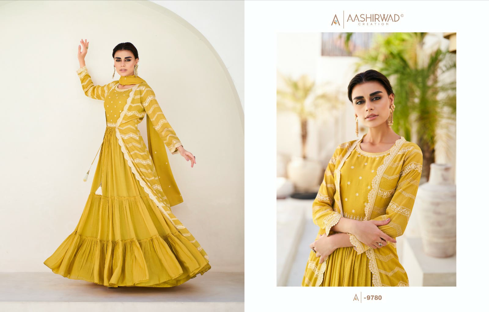 Buy Online Aashirwad Creation New Catalog Naaz Designer Anarkali Style Gown 3 Pcs of Full Catalogue at Wholesale Price. Looking for Aashirwad Creation New Catalog Naaz Designer Anarkali Style Gown Full Catalouge at Best Price? Buy Now Aashirwad Creation New Catalog Naaz Designer Anarkali Style Gown at Wholesale Rate of Rs 7800 with Total 3 Pcs from authroized dealer and supplier of AASHIRWAD Brand. Cost of Each piece is just only Rs 2600 which is very low and affordable price to resale the product in your retail store ,This is Surat based Wholesale Supplier & Dealer of AASHIRWAD Brand. Click on Brand name to Know more about AASHIRWAD Brand's products.Call or Whatsapp on 9898838984 for booking or enquiry