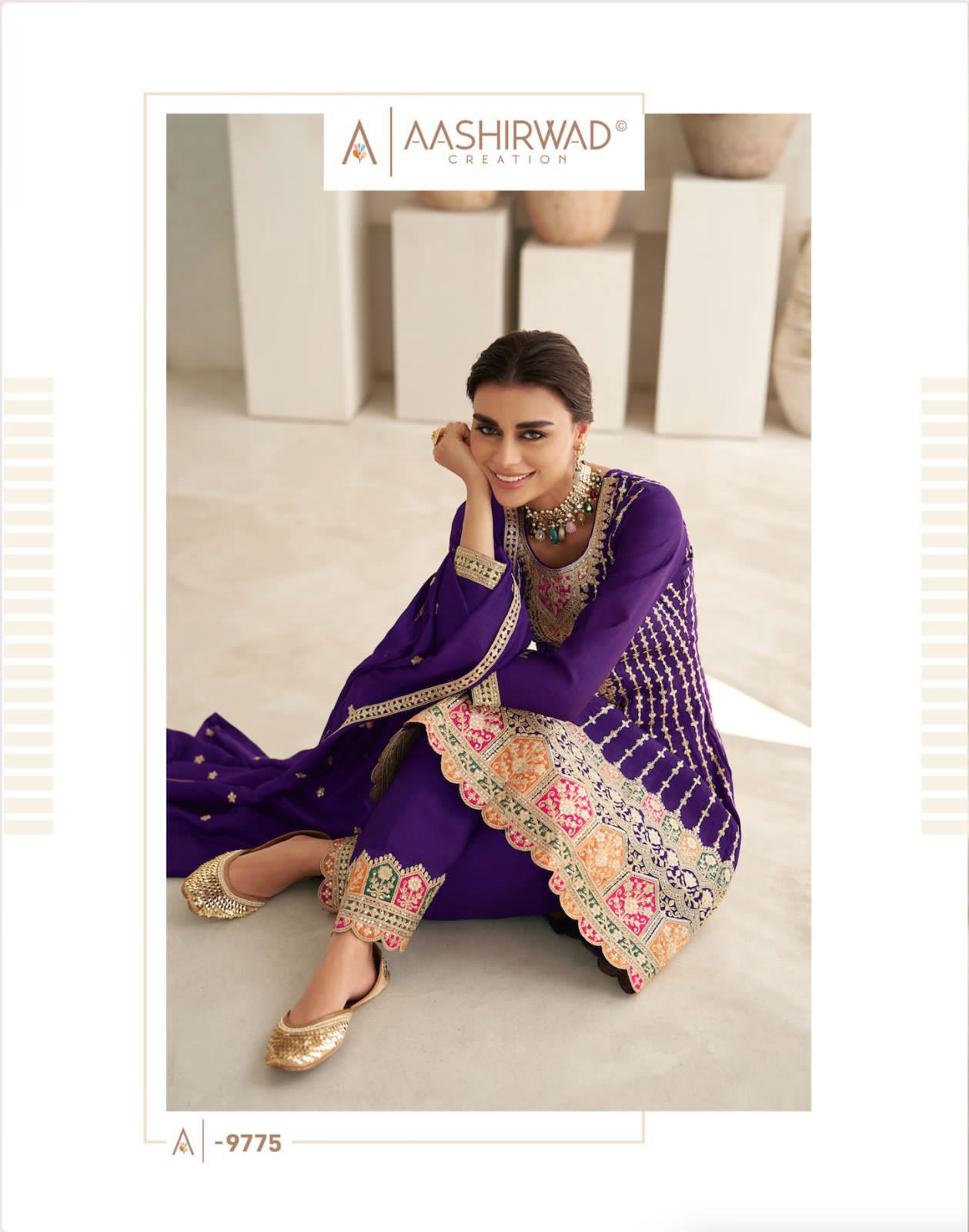 Buy Online Aashirwad Creation Romani Primum Silk Designer Collection Manufacturer Surat 4 Pcs of Full Catalogue at Wholesale Price. Looking for Aashirwad Creation Romani Primum Silk Designer Collection Manufacturer Surat Full Catalouge at Best Price? Buy Now Aashirwad Creation Romani Primum Silk Designer Collection Manufacturer Surat at Wholesale Rate of Rs 10396 with Total 4 Pcs from authroized dealer and supplier of AASHIRWAD Brand. Cost of Each piece is just only Rs 2599 which is very low and affordable price to resale the product in your retail store ,This is Surat based Wholesale Supplier & Dealer of AASHIRWAD Brand. Click on Brand name to Know more about AASHIRWAD Brand's products.Call or Whatsapp on 9898838984 for booking or enquiry