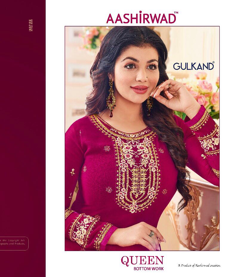 Buy Online Aashirwad Gulkand Queen Bottom Work Catlogue 5 Pcs of Full Catalogue at Wholesale Price. Looking for Aashirwad Gulkand Queen Bottom Work Catlogue Full Catalouge at Best Price? Buy Now Aashirwad Gulkand Queen Bottom Work Catlogue at Wholesale Rate of Rs 6975 with Total 5 Pcs from authroized dealer and supplier of AASHIRWAD Brand. Cost of Each piece is just only Rs 1395 which is very low and affordable price to resale the product in your retail store ,This is Surat based Wholesale Supplier & Dealer of AASHIRWAD Brand. Click on Brand name to Know more about AASHIRWAD Brand's products.Call or Whatsapp on 9898838984 for booking or enquiry