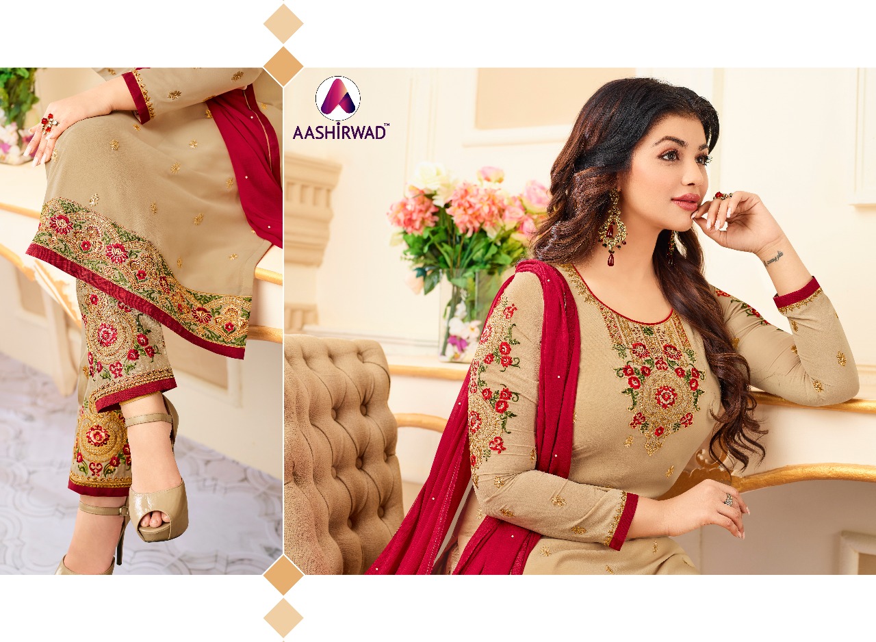 Aashirwad creation .. Queen ..(bottom work ) Top... Real georgette Inner .. Dull santoon Bottom .. Dull santoon Duptta .. Narzling Price .. 1395 per pcs . Set to set . GST 5 Percent Extra. Dispatch from 3 rd July 2018. Book your order. Order whatspp +919898838984 |