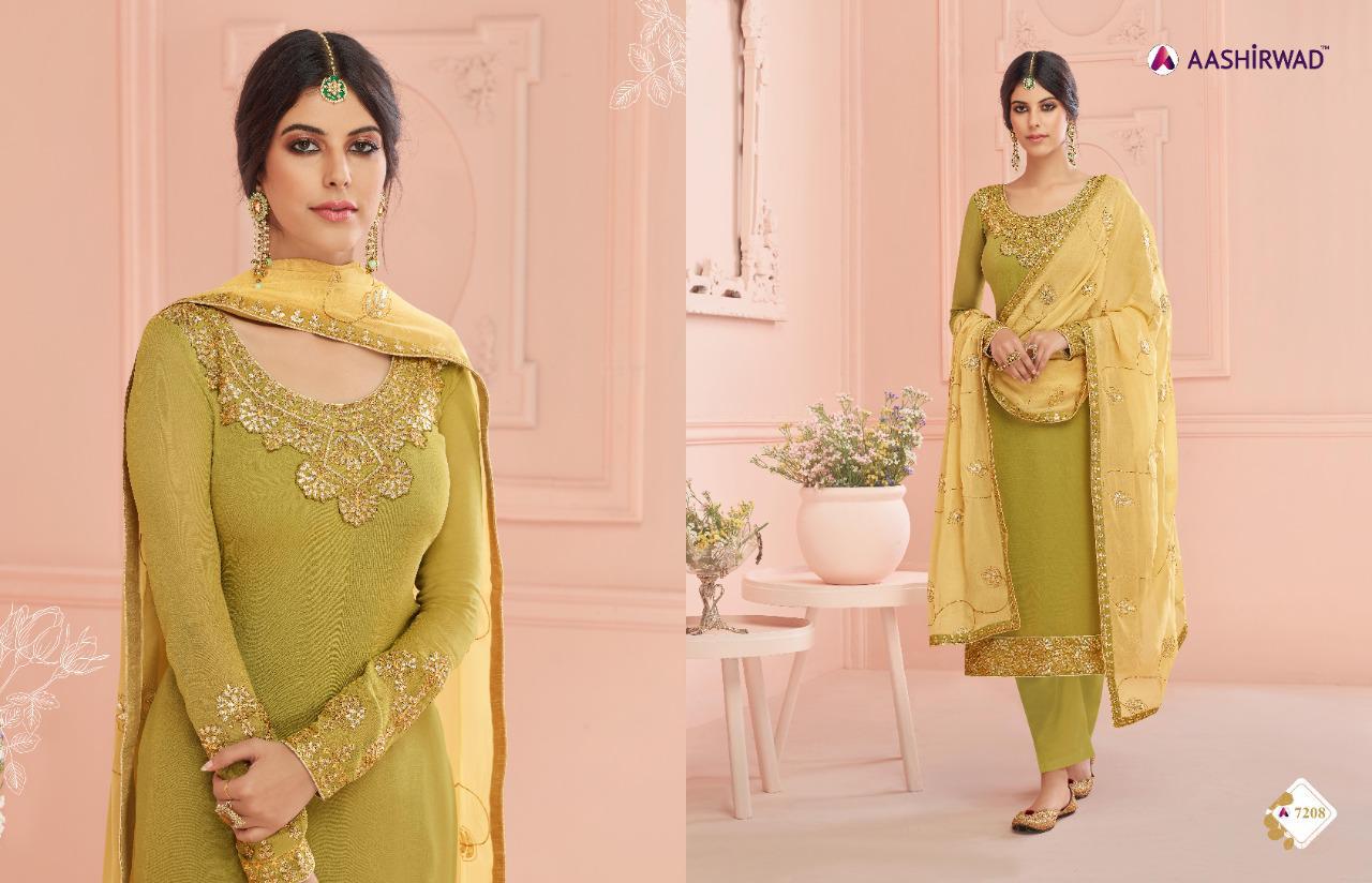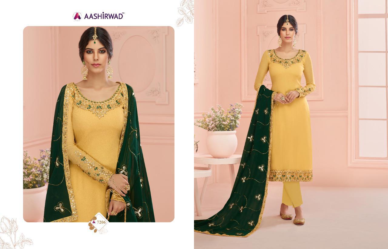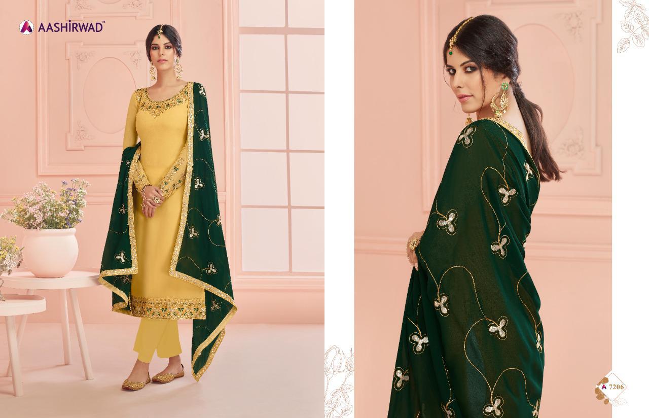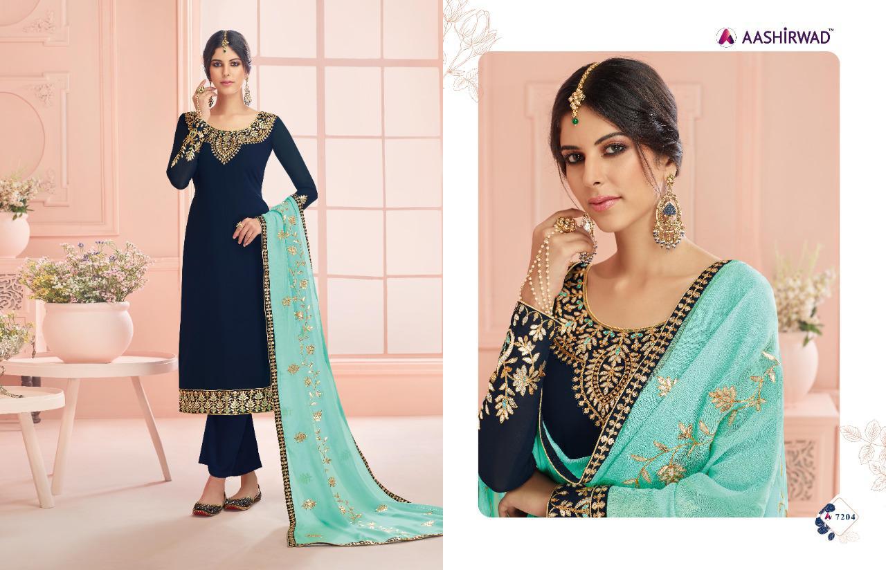 Buy Online Aashirwad Mehar Series 7203 To 7208 Designer Party Wear Suits Wholesale Supplier Gujarat 6 Pcs of Full Catalogue at Wholesale Price. Looking for Aashirwad Mehar Series 7203 To 7208 Designer Party Wear Suits Wholesale Supplier Gujarat Full Catalouge at Best Price? Buy Now Aashirwad Mehar Series 7203 To 7208 Designer Party Wear Suits Wholesale Supplier Gujarat at Wholesale Rate of Rs 10170 with Total 6 Pcs from authroized dealer and supplier of AASHIRWAD Brand. Cost of Each piece is just only Rs 1695 which is very low and affordable price to resale the product in your retail store ,This is Surat based Wholesale Supplier & Dealer of AASHIRWAD Brand. Click on Brand name to Know more about AASHIRWAD Brand's products.Call or Whatsapp on 9898838984 for booking or enquiry