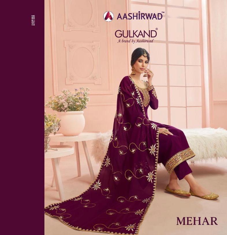 Aashirwad Mehar Series 7203 To 7208 Designer Party Wear Suits Wholesale Supplier Gujarat