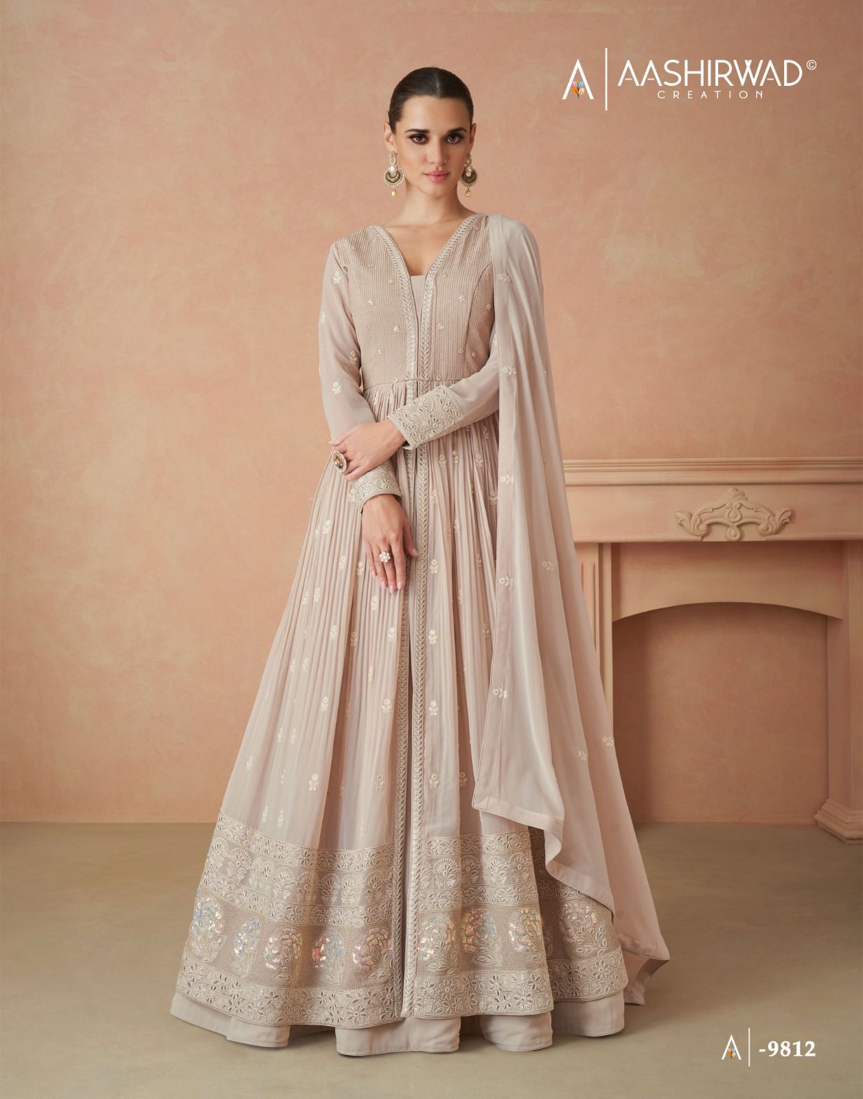 Aashirwad New Catalog Andaz Georgette Long Anarkali Dress Diwali Special