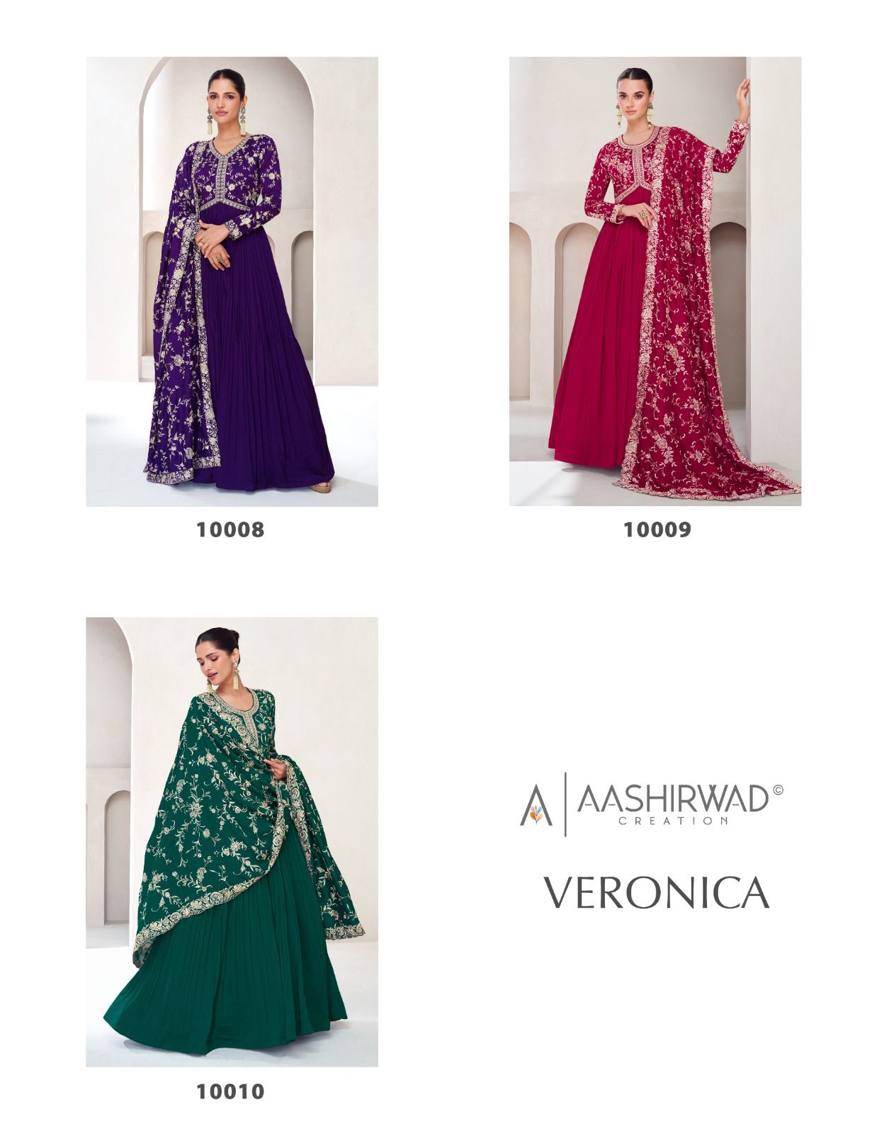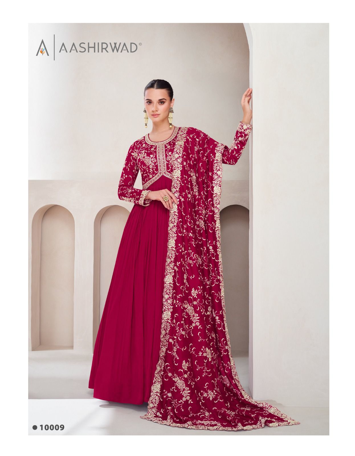 Buy Online Aashirwad New Veronica Silk Anarkali Suit 3 Pcs of Full Catalogue at Wholesale Price. Looking for Aashirwad New Veronica Silk Anarkali Suit Full Catalouge at Best Price? Buy Now Aashirwad New Veronica Silk Anarkali Suit at Wholesale Rate of Rs 7797 with Total 3 Pcs from authroized dealer and supplier of AASHIRWAD Brand. Cost of Each piece is just only Rs 2599 which is very low and affordable price to resale the product in your retail store ,This is Surat based Wholesale Supplier & Dealer of AASHIRWAD Brand. Click on Brand name to Know more about AASHIRWAD Brand's products.Call or Whatsapp on 9898838984 for booking or enquiry
