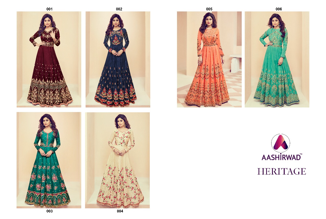 Buy Online Aashirwad Presents Heritage Party Wear Designer Suits Wholesale Supplier And Dealer India 6 Pcs of Full Catalogue at Wholesale Price. Looking for Aashirwad Presents Heritage Party Wear Designer Suits Wholesale Supplier And Dealer India Full Catalouge at Best Price? Buy Now Aashirwad Presents Heritage Party Wear Designer Suits Wholesale Supplier And Dealer India at Wholesale Rate of Rs 14370 with Total 6 Pcs from authroized dealer and supplier of AASHIRWAD Brand. Cost of Each piece is just only Rs 2395 which is very low and affordable price to resale the product in your retail store ,This is Surat based Wholesale Supplier & Dealer of AASHIRWAD Brand. Click on Brand name to Know more about AASHIRWAD Brand's products.Call or Whatsapp on 9898838984 for booking or enquiry