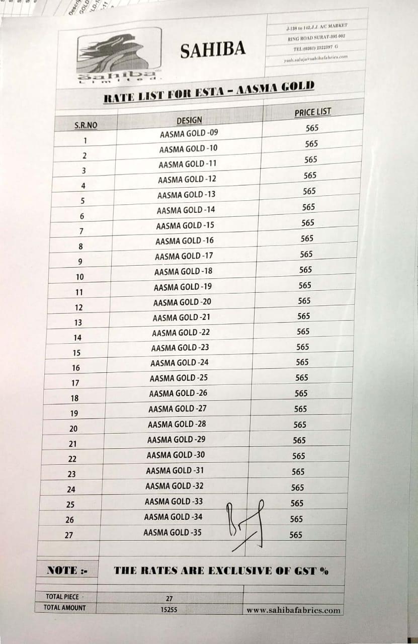 Aasma Gold By Sahiba 09 Series Designer Georgette Printed Saree Collection Wholesaler Surat