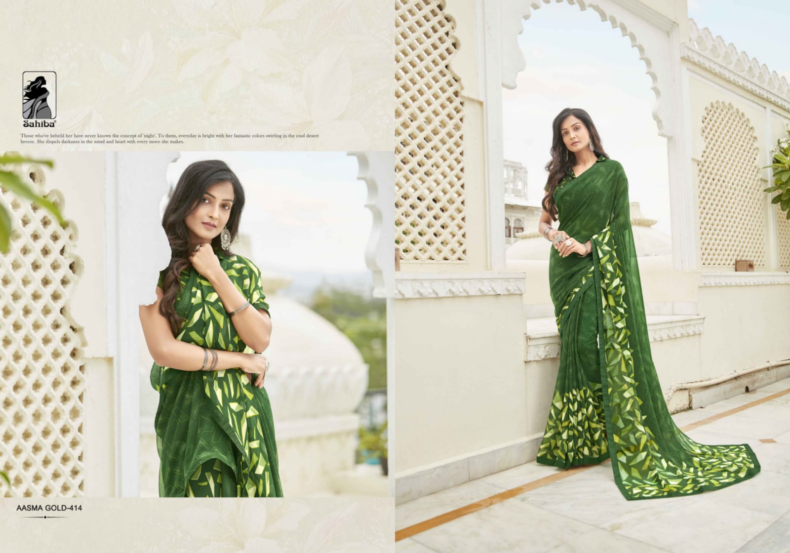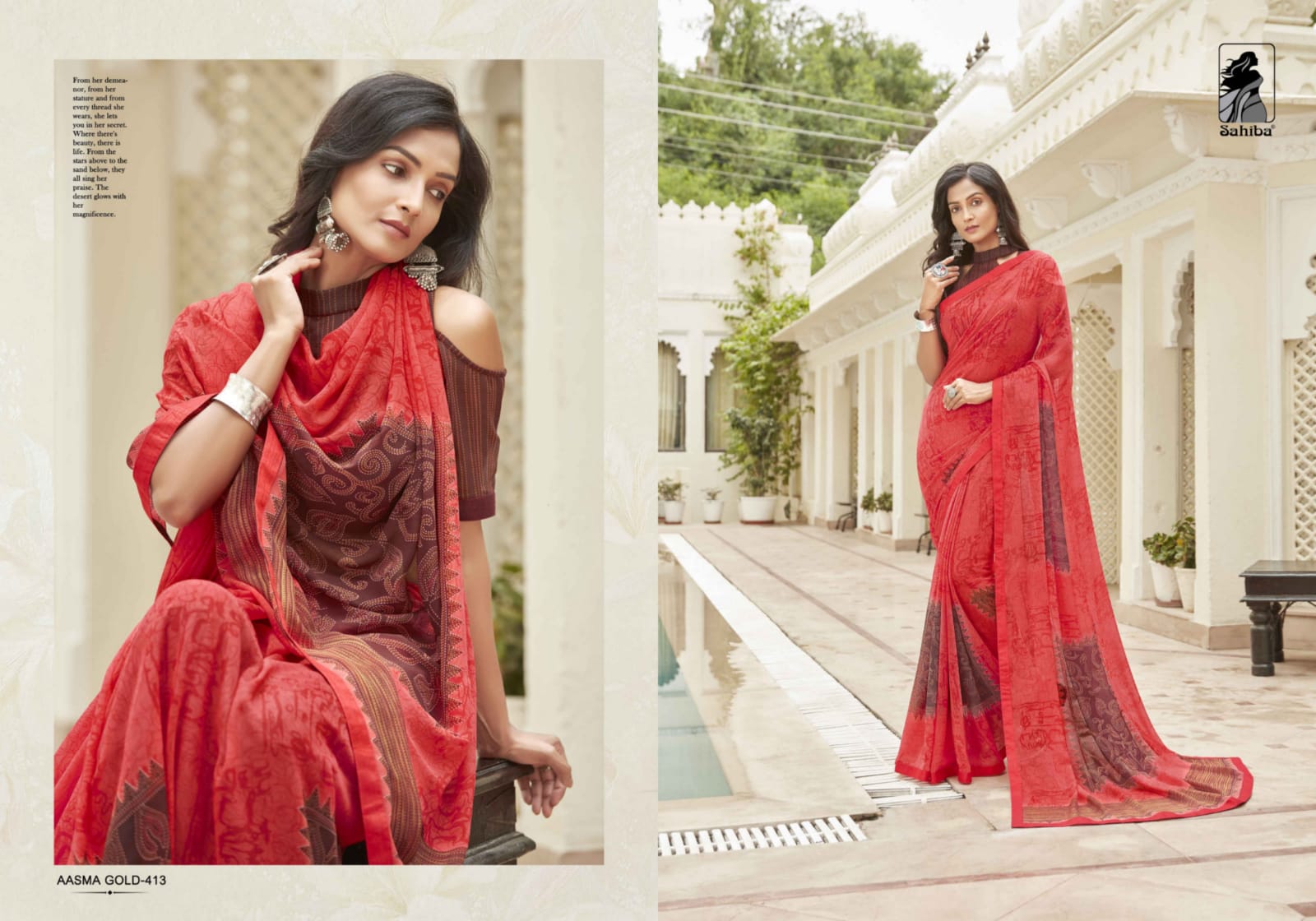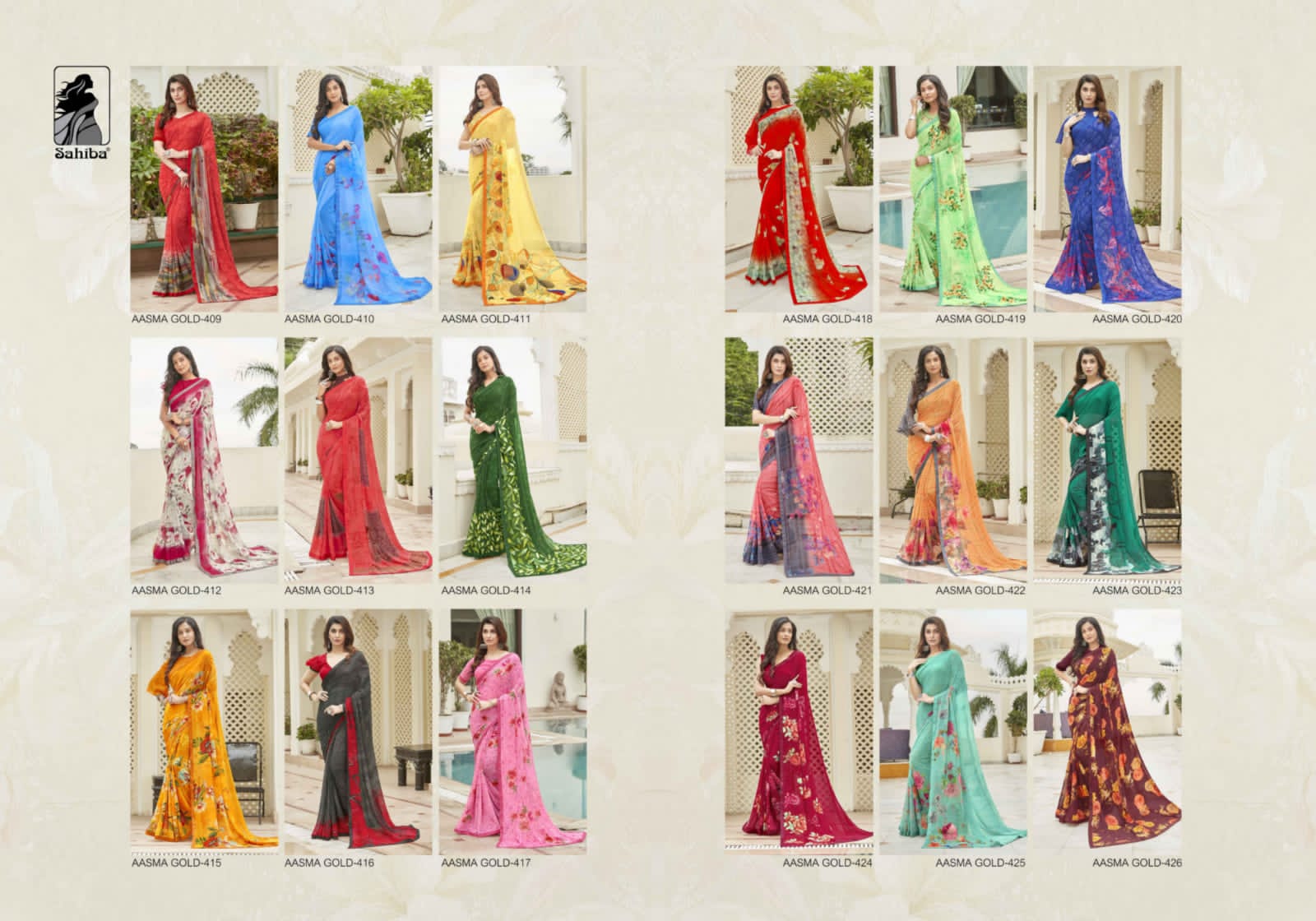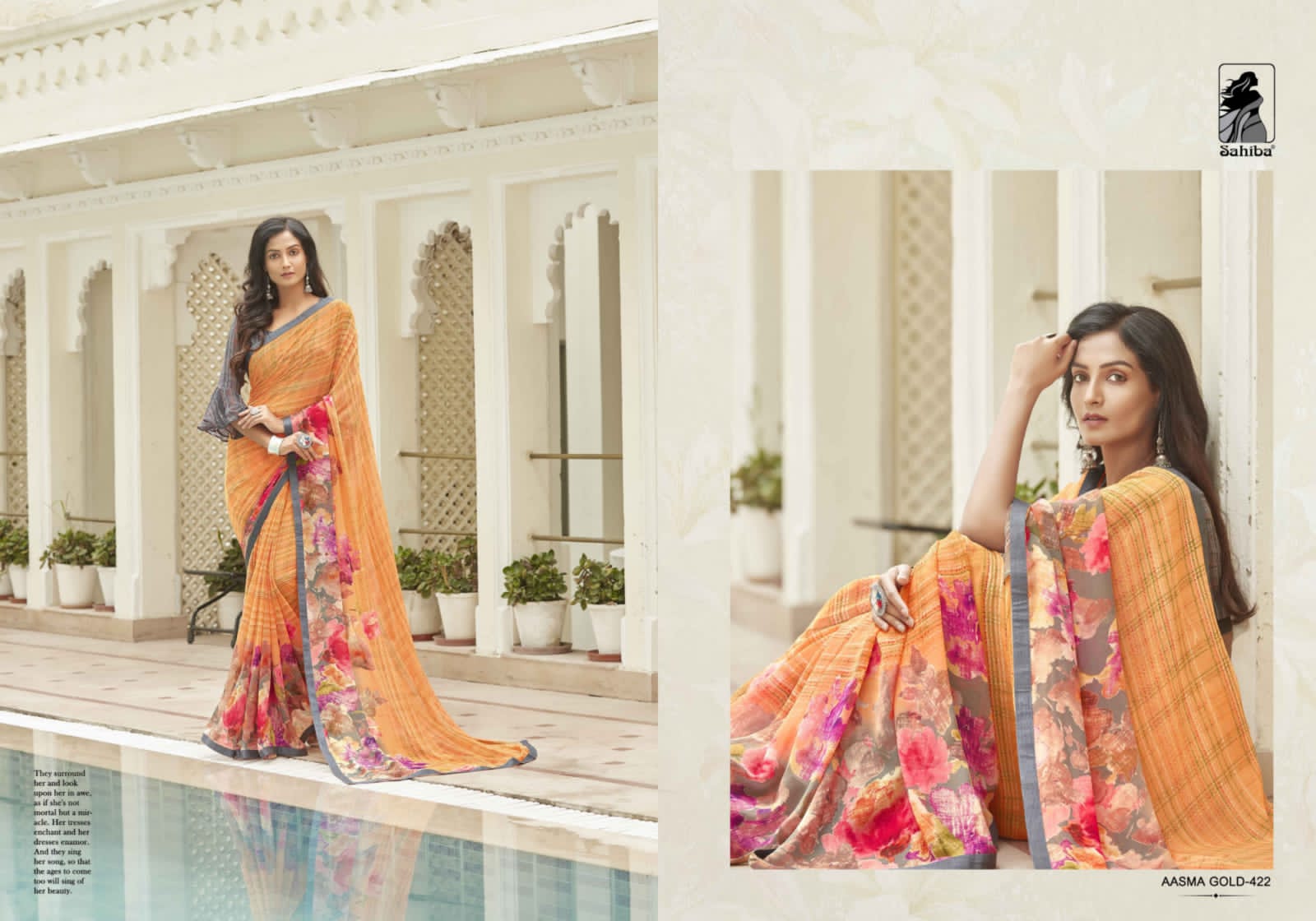 Buy Online Aasma Gold Vol 4 By Sahiba Wholesaler Supplier From Surat 18 Pcs of Full Catalogue at Wholesale Price. Looking for Aasma Gold Vol 4 By Sahiba Wholesaler Supplier From Surat Full Catalouge at Best Price? Buy Now Aasma Gold Vol 4 By Sahiba Wholesaler Supplier From Surat at Wholesale Rate of Rs 10350 with Total 18 Pcs from authroized dealer and supplier of SAHIBA Brand. Cost of Each piece is just only Rs 575 which is very low and affordable price to resale the product in your retail store ,This is Surat based Wholesale Supplier & Dealer of SAHIBA Brand. Click on Brand name to Know more about SAHIBA Brand's products.Call or Whatsapp on 9898838984 for booking or enquiry