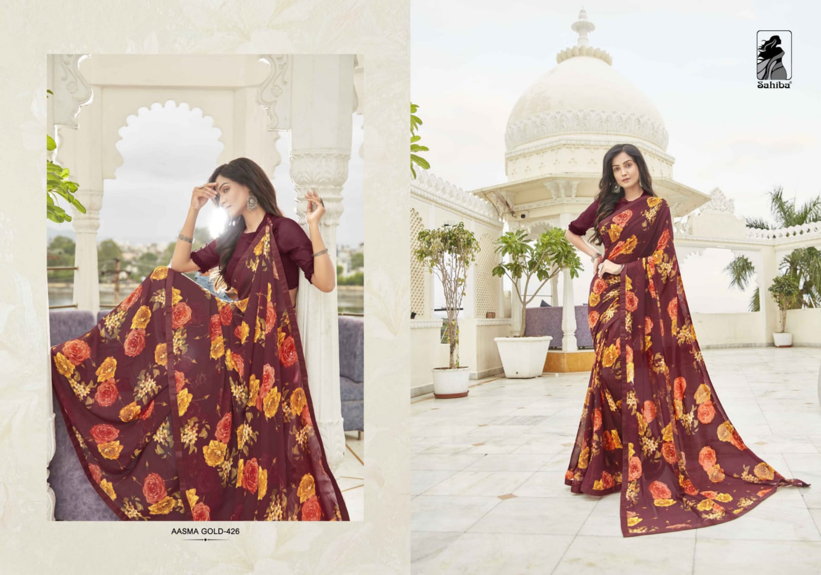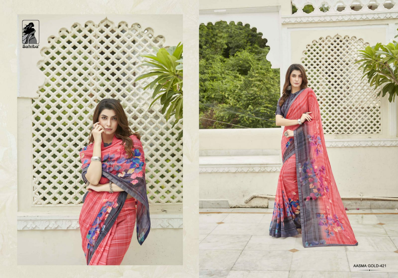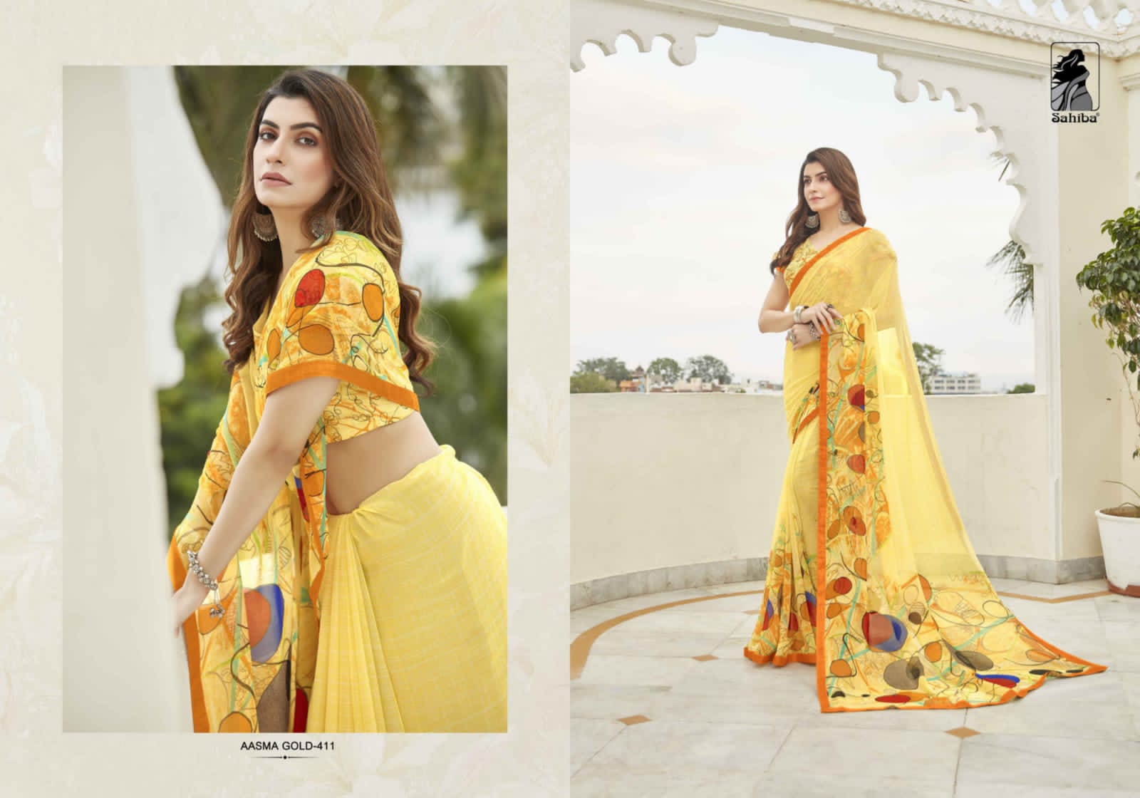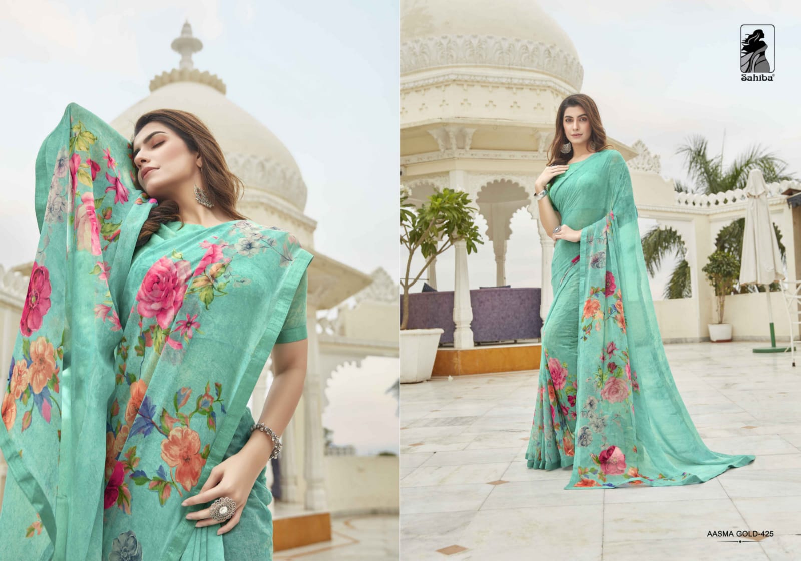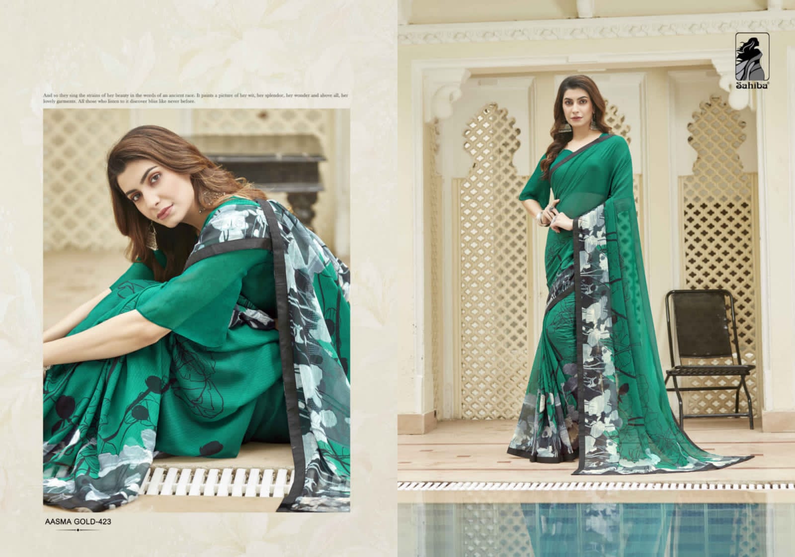 Buy Online Aasma Gold Vol 4 By Sahiba Wholesaler Supplier From Surat 18 Pcs of Full Catalogue at Wholesale Price. Looking for Aasma Gold Vol 4 By Sahiba Wholesaler Supplier From Surat Full Catalouge at Best Price? Buy Now Aasma Gold Vol 4 By Sahiba Wholesaler Supplier From Surat at Wholesale Rate of Rs 10350 with Total 18 Pcs from authroized dealer and supplier of SAHIBA Brand. Cost of Each piece is just only Rs 575 which is very low and affordable price to resale the product in your retail store ,This is Surat based Wholesale Supplier & Dealer of SAHIBA Brand. Click on Brand name to Know more about SAHIBA Brand's products.Call or Whatsapp on 9898838984 for booking or enquiry