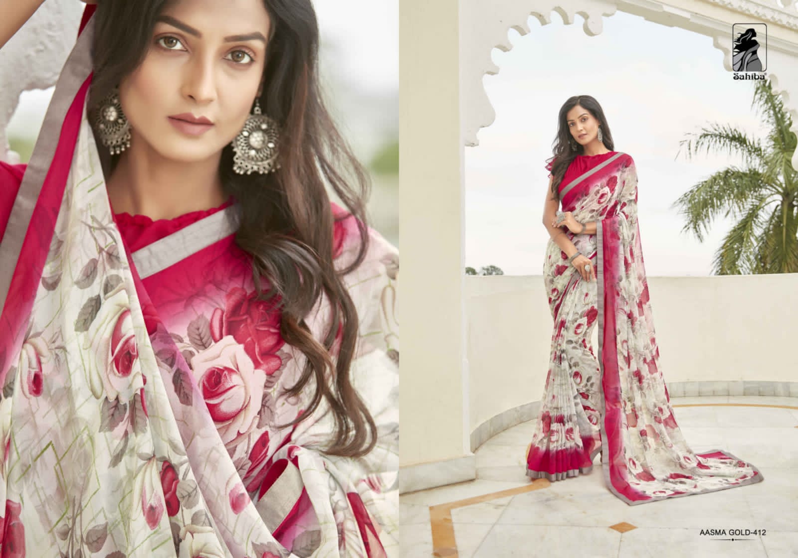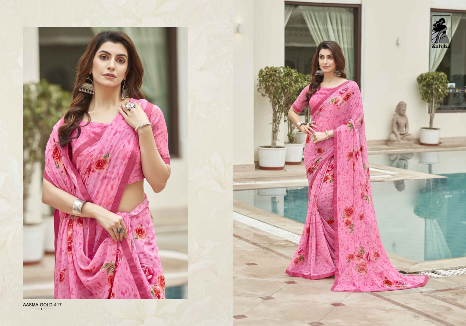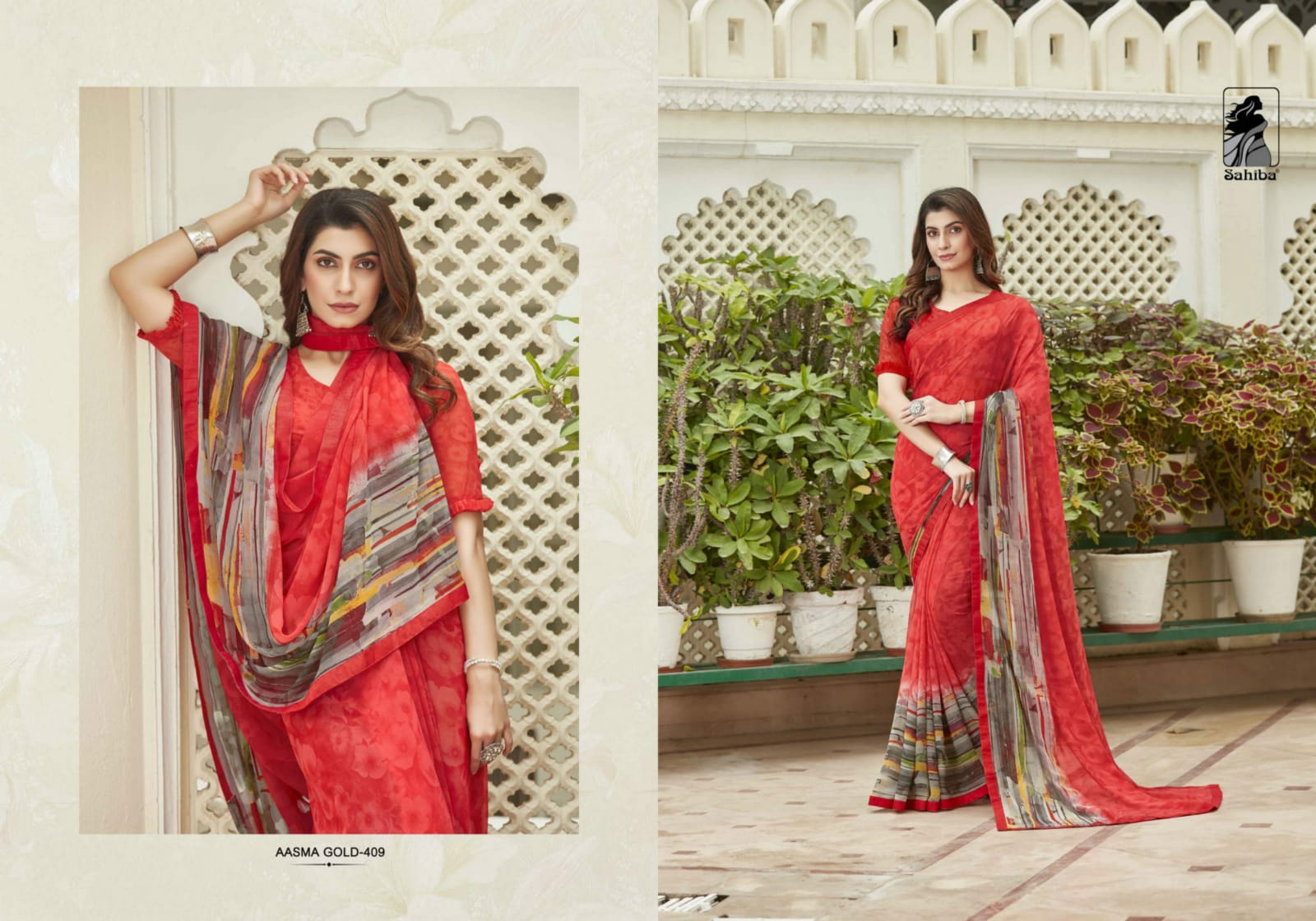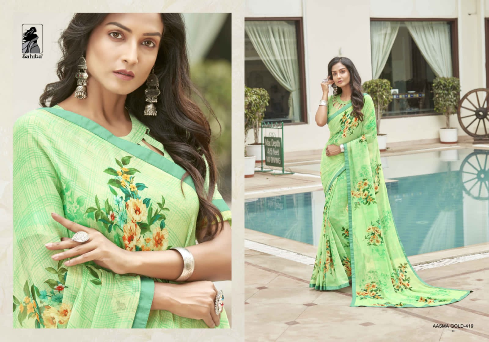 Buy Online Aasma Gold Vol 4 By Sahiba Wholesaler Supplier From Surat 18 Pcs of Full Catalogue at Wholesale Price. Looking for Aasma Gold Vol 4 By Sahiba Wholesaler Supplier From Surat Full Catalouge at Best Price? Buy Now Aasma Gold Vol 4 By Sahiba Wholesaler Supplier From Surat at Wholesale Rate of Rs 10350 with Total 18 Pcs from authroized dealer and supplier of SAHIBA Brand. Cost of Each piece is just only Rs 575 which is very low and affordable price to resale the product in your retail store ,This is Surat based Wholesale Supplier & Dealer of SAHIBA Brand. Click on Brand name to Know more about SAHIBA Brand's products.Call or Whatsapp on 9898838984 for booking or enquiry