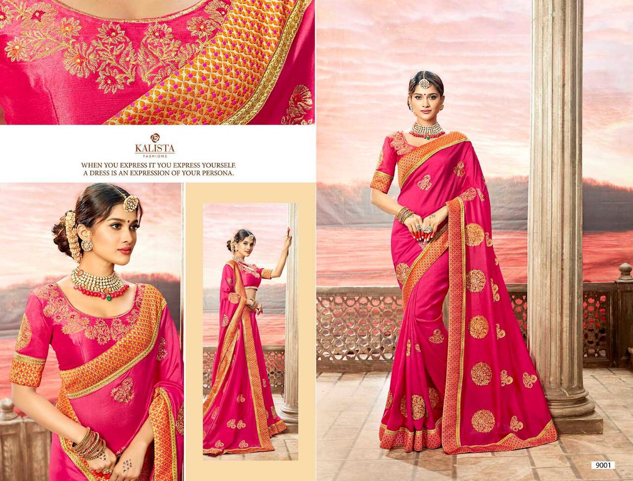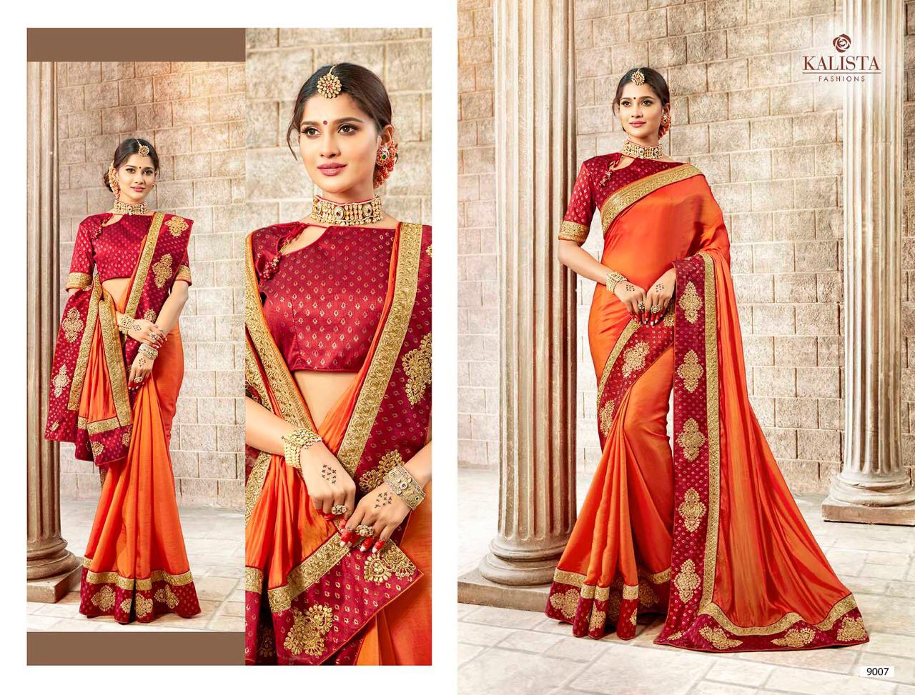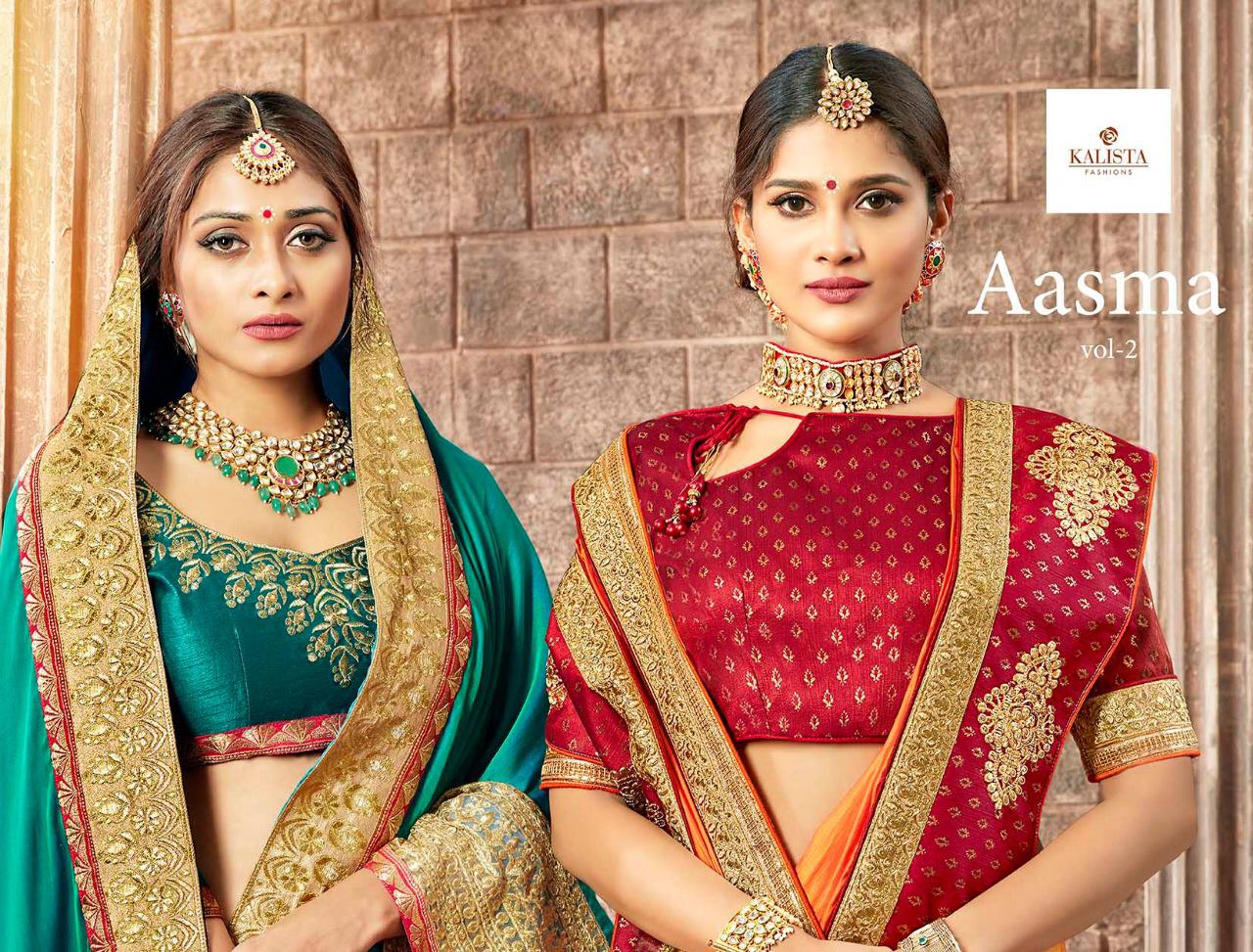 Buy Online Aasma Vol 2 By Kalista 9001 Series Fancy Designer Party Wear Saree Collection Wholesaler Surat 8 Pcs of Full Catalogue at Wholesale Price. Looking for Aasma Vol 2 By Kalista 9001 Series Fancy Designer Party Wear Saree Collection Wholesaler Surat Full Catalouge at Best Price? Buy Now Aasma Vol 2 By Kalista 9001 Series Fancy Designer Party Wear Saree Collection Wholesaler Surat at Wholesale Rate of Rs 10360 with Total 8 Pcs from authroized dealer and supplier of KALISTA FASHION Brand. Cost of Each piece is just only Rs 1295 which is very low and affordable price to resale the product in your retail store ,This is Surat based Wholesale Supplier & Dealer of KALISTA FASHION Brand. Click on Brand name to Know more about KALISTA FASHION Brand's products.Call or Whatsapp on 9898838984 for booking or enquiry