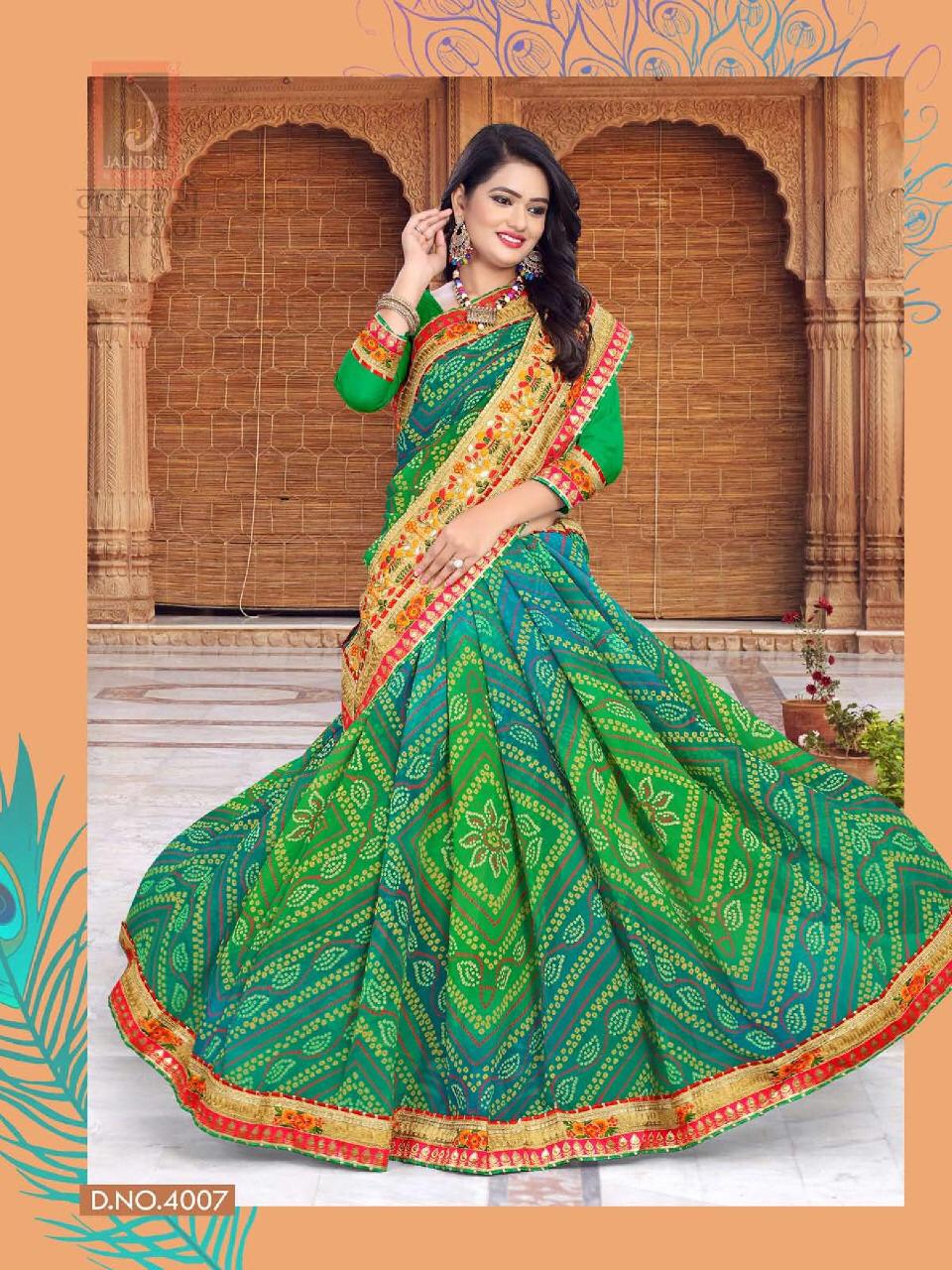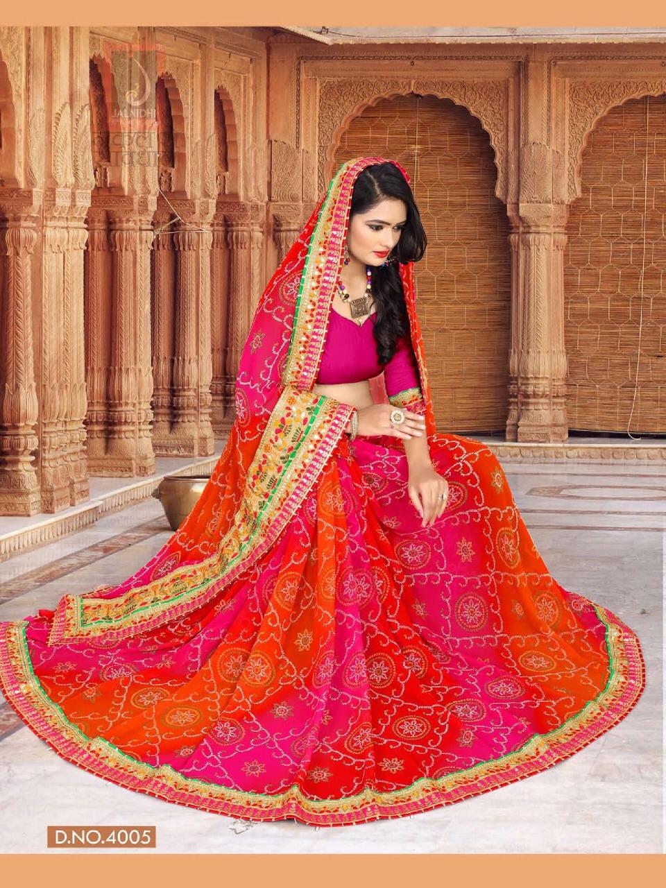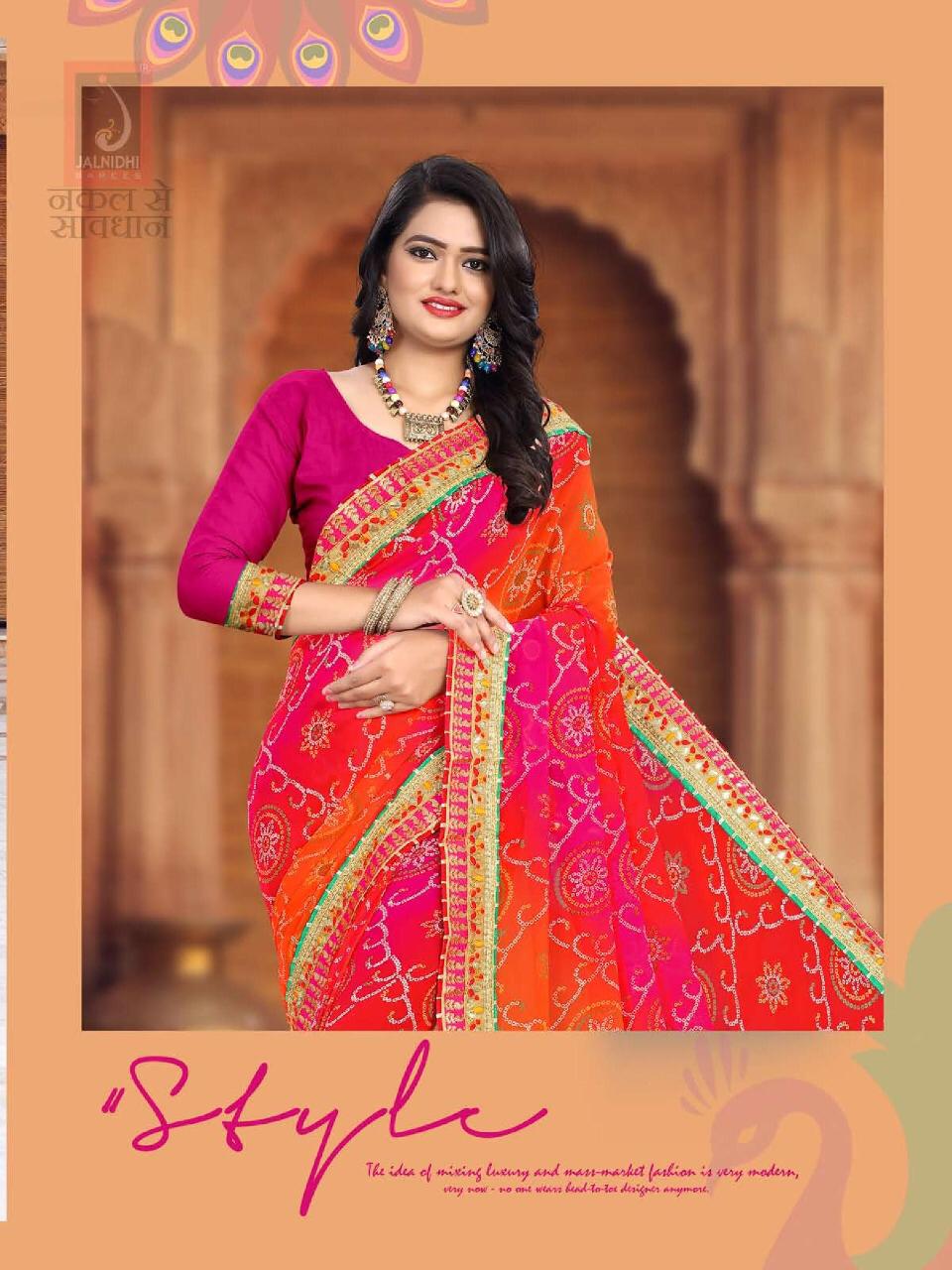 Brand - Jalnidhi. *NEW HEAVY WORK BANDHANI CATALOUGE* Name - *AASTHA* by Jalnidhi PCS - *6 PCS* RATE - 860 per pcs . Set & loose & singel FABRIC - *GORGET* Delivery from today 100+single |