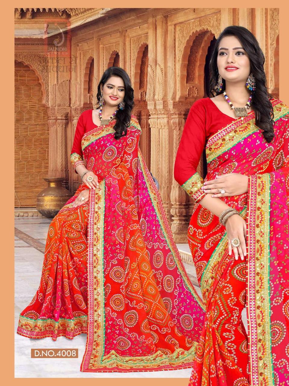 Buy Online Aastha Series 4001 To 4008 By Jalnidhi Single And Set Stockiest And Supplier From Surat 6 Pcs of Full Catalogue at Wholesale Price. Looking for Aastha Series 4001 To 4008 By Jalnidhi Single And Set Stockiest And Supplier From Surat Full Catalouge at Best Price? Buy Now Aastha Series 4001 To 4008 By Jalnidhi Single And Set Stockiest And Supplier From Surat at Wholesale Rate of Rs 5160 with Total 6 Pcs from authroized dealer and supplier of Jalnidhi sarees Brand. Cost of Each piece is just only Rs 860 which is very low and affordable price to resale the product in your retail store ,This is Surat based Wholesale Supplier & Dealer of Jalnidhi sarees Brand. Click on Brand name to Know more about Jalnidhi sarees Brand's products.Call or Whatsapp on 9898838984 for booking or enquiry