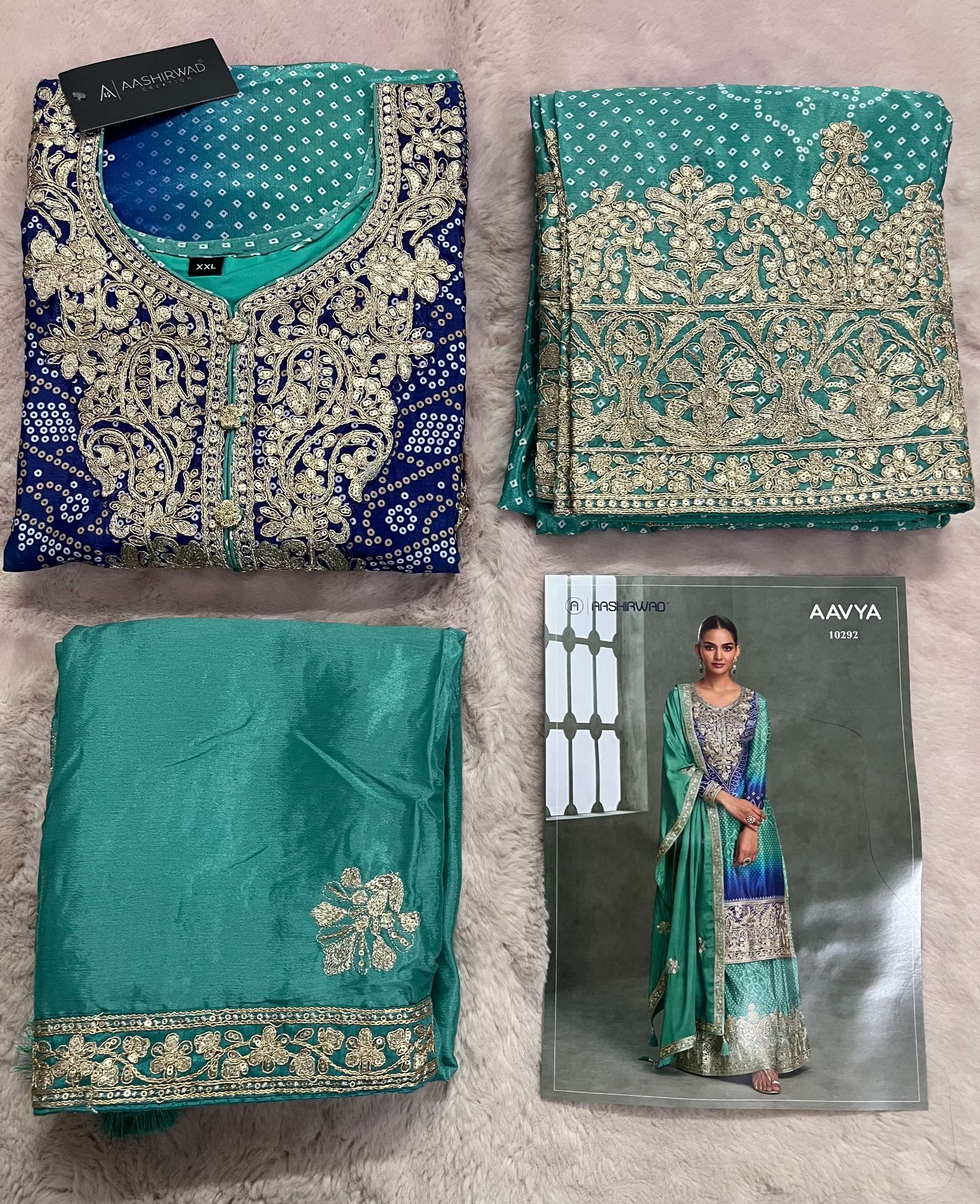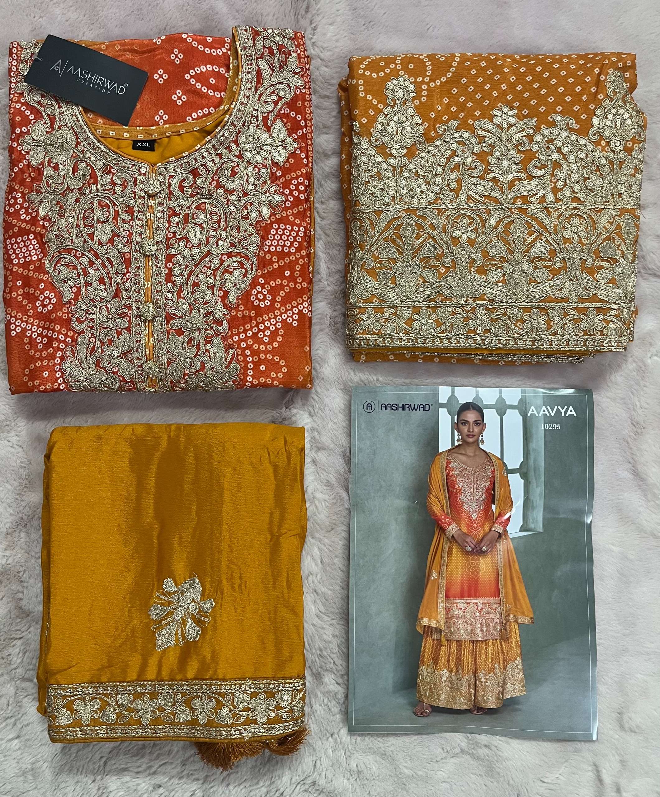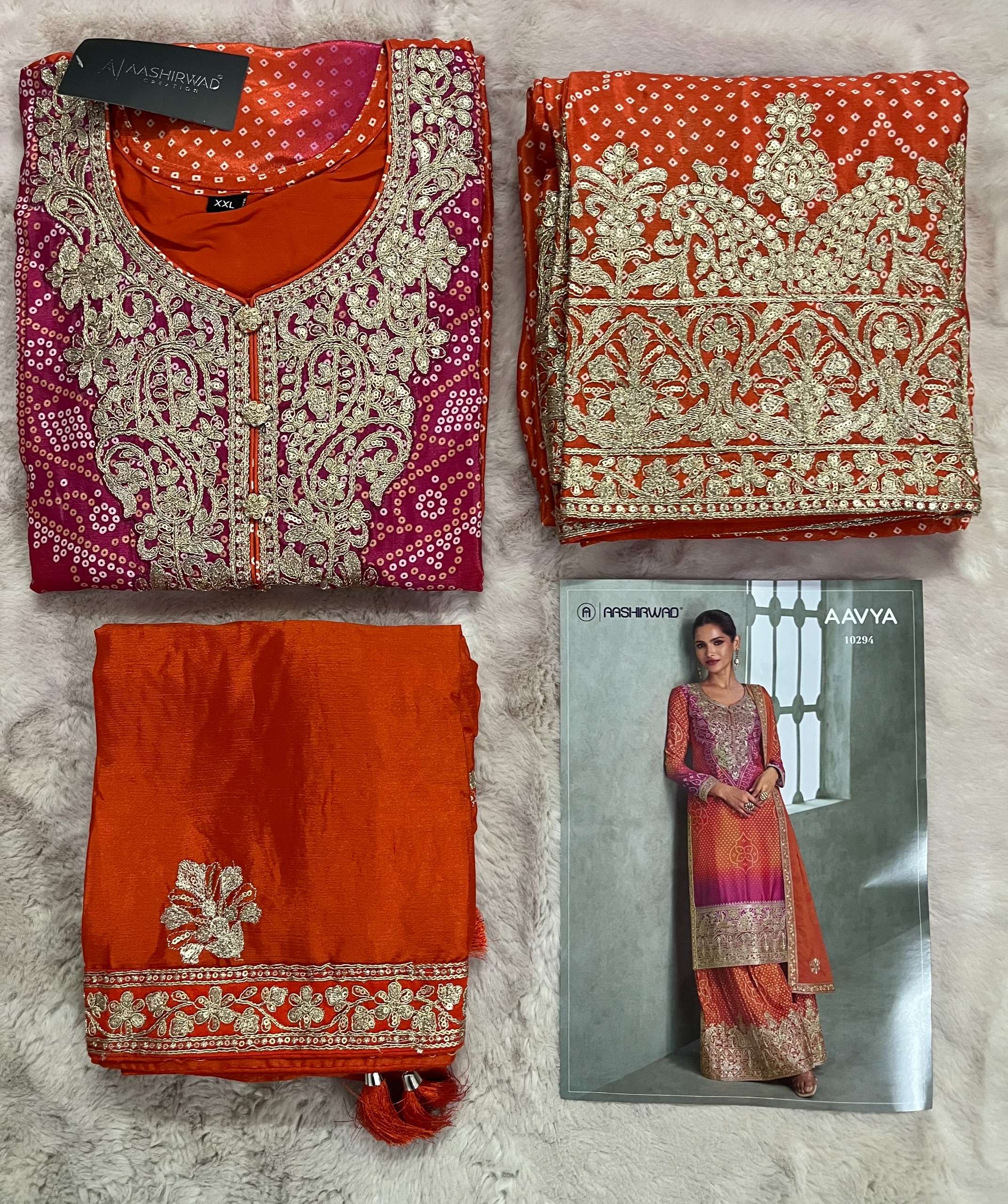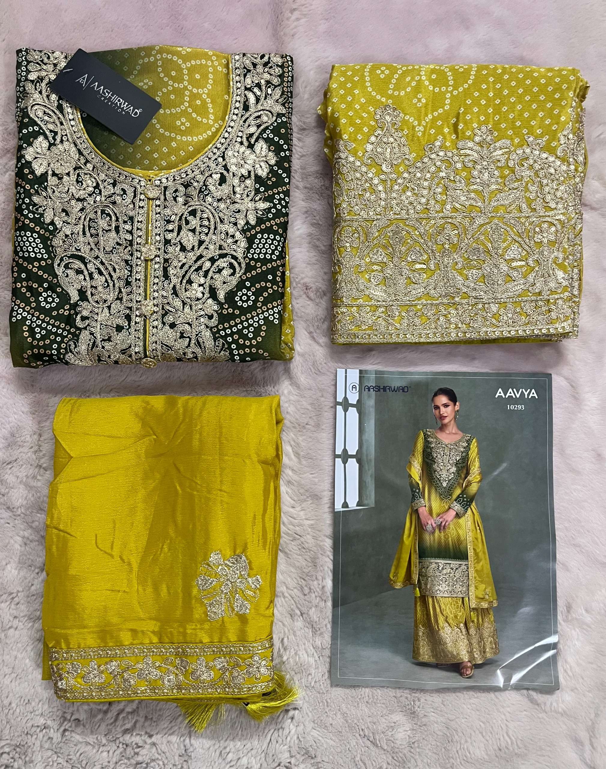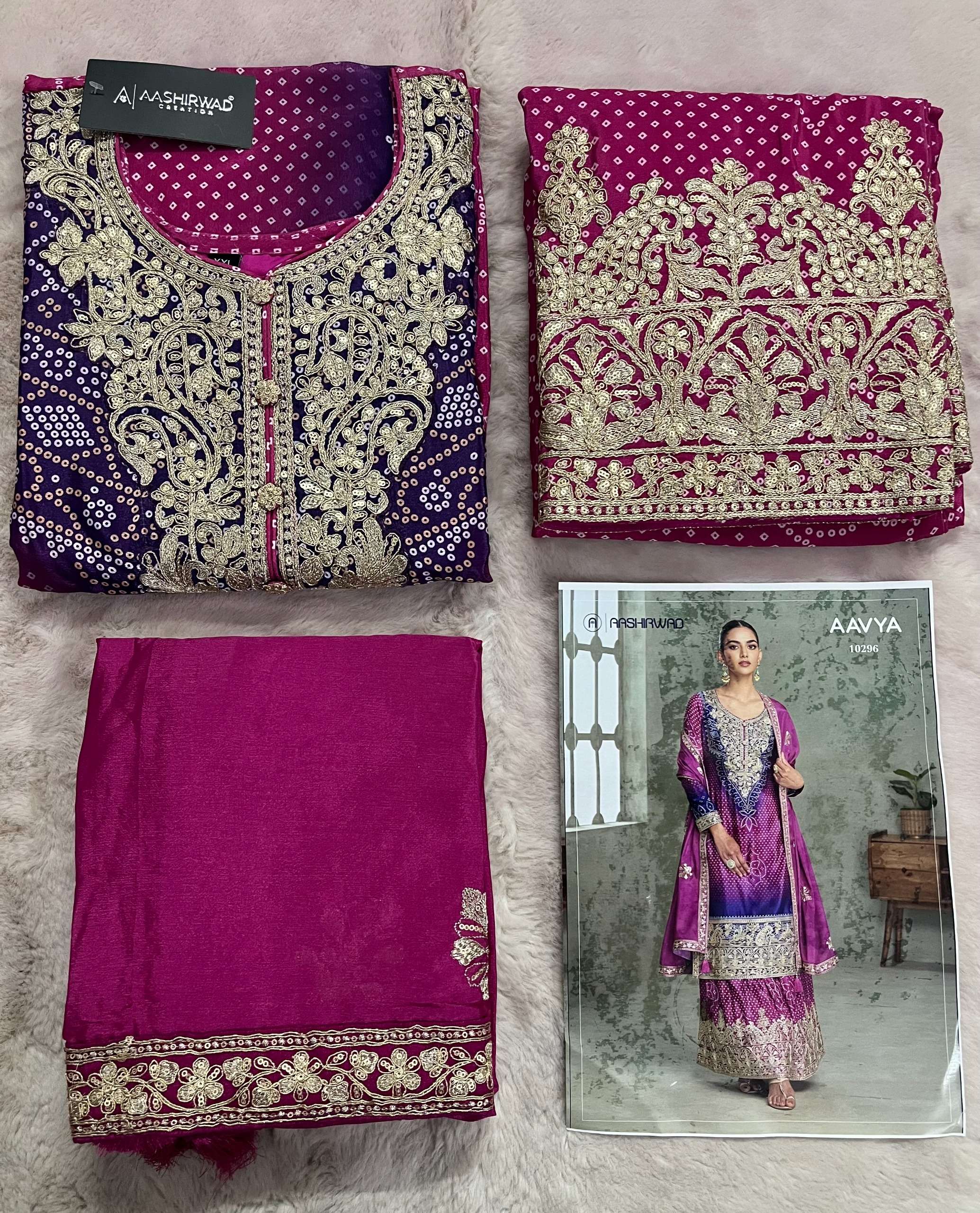 Buy Online AAVYA by AASHIRWAD suit collection manufacturers surat 5 Pcs of Full Catalogue at Wholesale Price. Looking for AAVYA by AASHIRWAD suit collection manufacturers surat Full Catalouge at Best Price? Buy Now AAVYA by AASHIRWAD suit collection manufacturers surat at Wholesale Rate of Rs 11475 with Total 5 Pcs from authroized dealer and supplier of AASHIRWAD Brand. Cost of Each piece is just only Rs 2295 which is very low and affordable price to resale the product in your retail store ,This is Surat based Wholesale Supplier & Dealer of AASHIRWAD Brand. Click on Brand name to Know more about AASHIRWAD Brand's products.Call or Whatsapp on 9898838984 for booking or enquiry