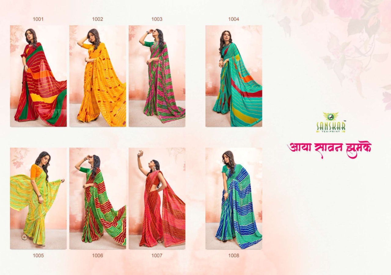 Buy Online Aaya Sawan Jhumke By Sanskar Wholesaler Supplier From Surat 8 Pcs of Full Catalogue at Wholesale Price. Looking for Aaya Sawan Jhumke By Sanskar Wholesaler Supplier From Surat Full Catalouge at Best Price? Buy Now Aaya Sawan Jhumke By Sanskar Wholesaler Supplier From Surat at Wholesale Rate of Rs 5120 with Total 8 Pcs from authroized dealer and supplier of SANSKAR SAREES Brand. Cost of Each piece is just only Rs 640 which is very low and affordable price to resale the product in your retail store ,This is Surat based Wholesale Supplier & Dealer of SANSKAR SAREES Brand. Click on Brand name to Know more about SANSKAR SAREES Brand's products.Call or Whatsapp on 9898838984 for booking or enquiry