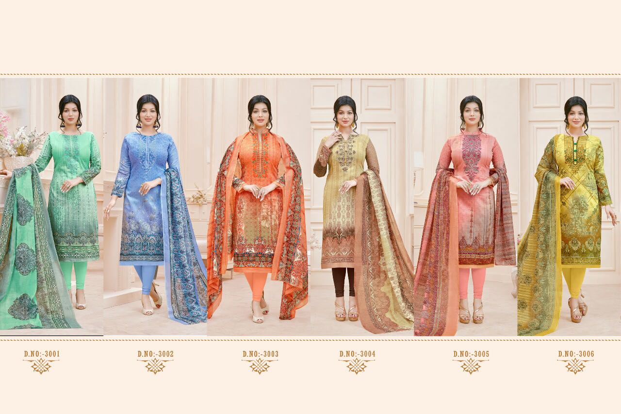 Buy Online Aayesha Arts The Pure Lawn Pakiza Vol 3 3001 Series Suit 6 Pcs of Full Catalogue at Wholesale Price. Looking for Aayesha Arts The Pure Lawn Pakiza Vol 3 3001 Series Suit Full Catalouge at Best Price? Buy Now Aayesha Arts The Pure Lawn Pakiza Vol 3 3001 Series Suit at Wholesale Rate of Rs 4194 with Total 6 Pcs from authroized dealer and supplier of AAYESHA ARTS Brand. Cost of Each piece is just only Rs 699 which is very low and affordable price to resale the product in your retail store ,This is Surat based Wholesale Supplier & Dealer of AAYESHA ARTS Brand. Click on Brand name to Know more about AAYESHA ARTS Brand's products.Call or Whatsapp on 9898838984 for booking or enquiry