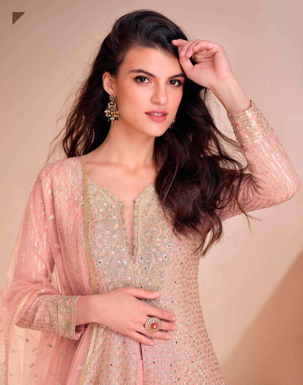 FABRIC - REAL GEROGETTE ( HEAVY LOOK EMBROIDERED TOP WITH HAND SEROSKI AND EMBROIDERED PLAZZO WITH EMBROIDERED DUPATTA )
