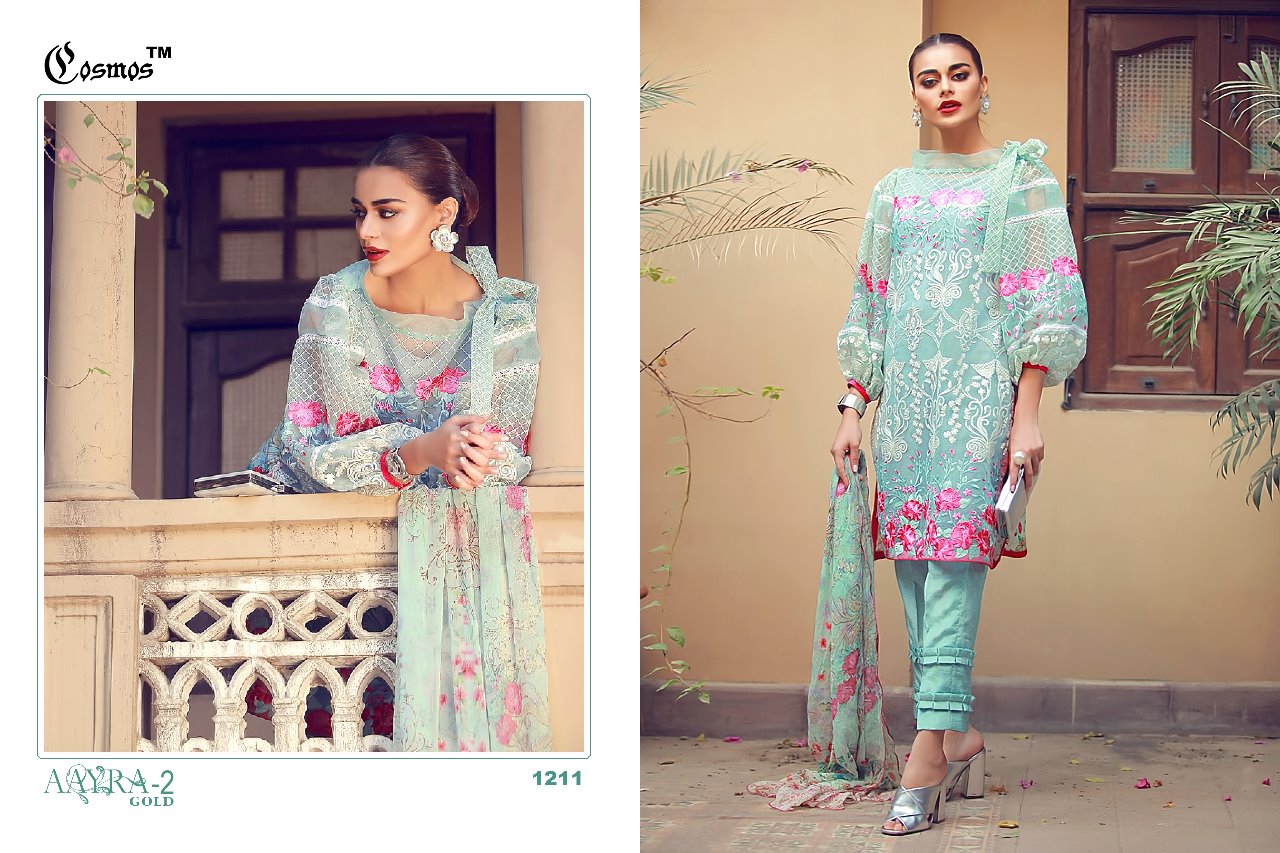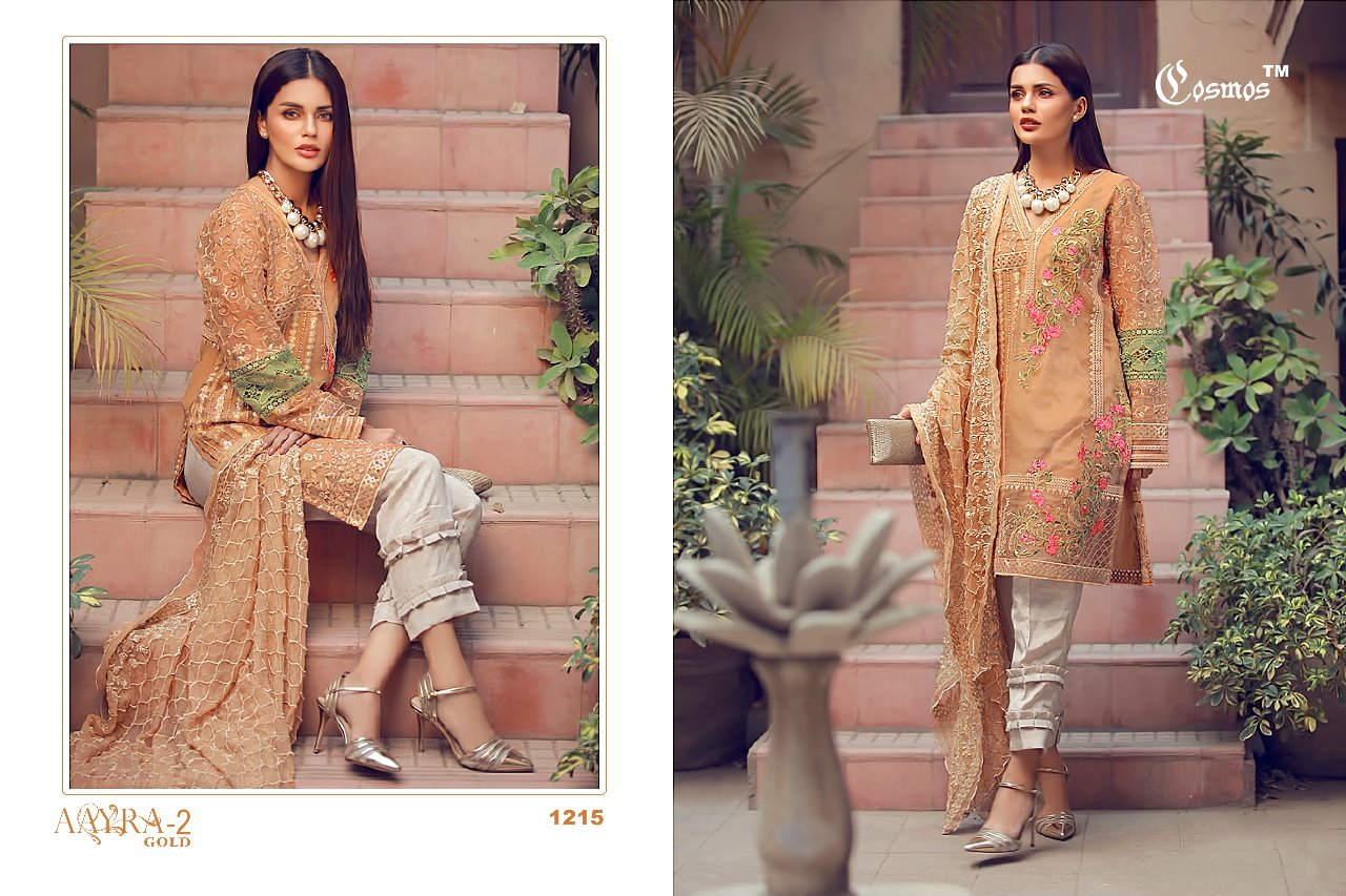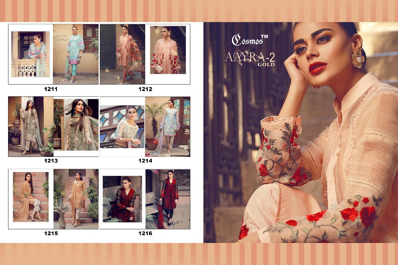 Buy Online Aayra Vol 2 Gold Pakistani Concept Designer Suits Wholesale Supplier And Dealer India 6 Pcs of Full Catalogue at Wholesale Price. Looking for Aayra Vol 2 Gold Pakistani Concept Designer Suits Wholesale Supplier And Dealer India Full Catalouge at Best Price? Buy Now Aayra Vol 2 Gold Pakistani Concept Designer Suits Wholesale Supplier And Dealer India at Wholesale Rate of Rs 7194 with Total 6 Pcs from authroized dealer and supplier of COSMOS Brand. Cost of Each piece is just only Rs 1199 which is very low and affordable price to resale the product in your retail store ,This is Surat based Wholesale Supplier & Dealer of COSMOS Brand. Click on Brand name to Know more about COSMOS Brand's products.Call or Whatsapp on 9898838984 for booking or enquiry