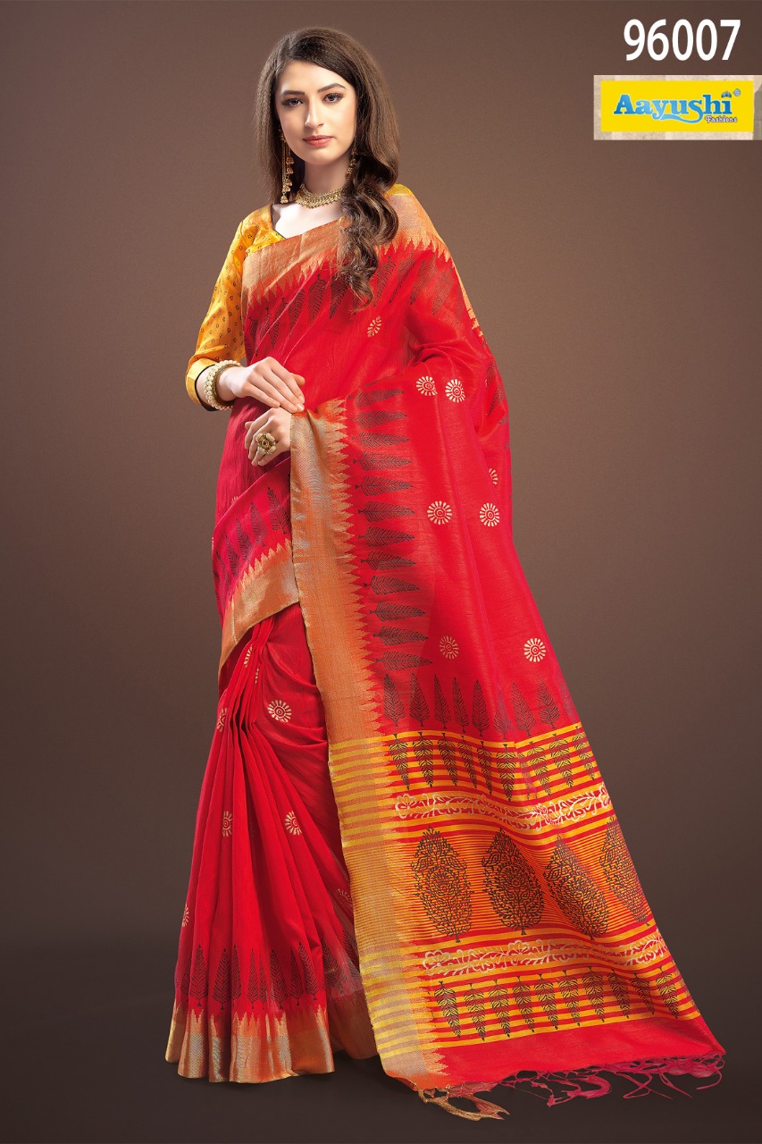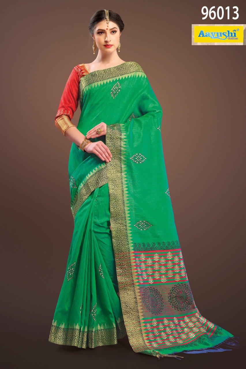 Buy Online Aayushi Block Deal Vol 2 96007 Series Weaving Silk Sarees 8 Pcs of Full Catalogue at Wholesale Price. Looking for Aayushi Block Deal Vol 2 96007 Series Weaving Silk Sarees Full Catalouge at Best Price? Buy Now Aayushi Block Deal Vol 2 96007 Series Weaving Silk Sarees at Wholesale Rate of Rs 8792 with Total 8 Pcs from authroized dealer and supplier of Aayushi fashions Brand. Cost of Each piece is just only Rs 1099 which is very low and affordable price to resale the product in your retail store ,This is Surat based Wholesale Supplier & Dealer of Aayushi fashions Brand. Click on Brand name to Know more about Aayushi fashions Brand's products.Call or Whatsapp on 9898838984 for booking or enquiry