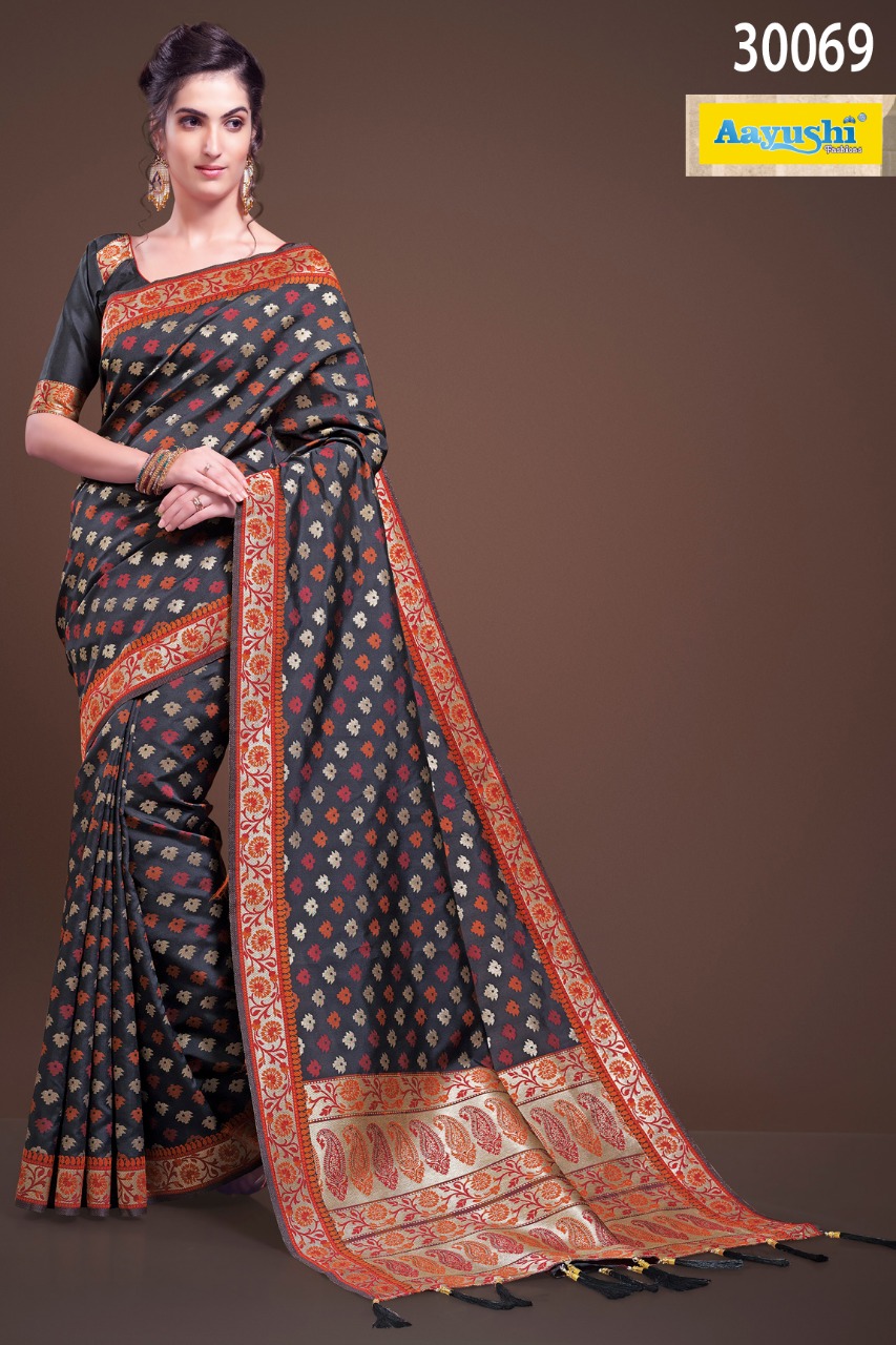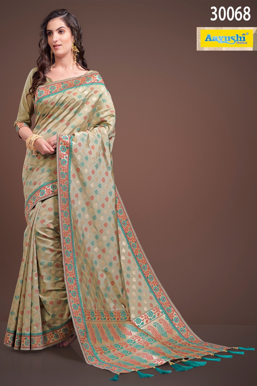 Buy Online Aayushi Series 30064 To 30074 Heavy Handloom Silk Sarees 10 Pcs of Full Catalogue at Wholesale Price. Looking for Aayushi Series 30064 To 30074 Heavy Handloom Silk Sarees Full Catalouge at Best Price? Buy Now Aayushi Series 30064 To 30074 Heavy Handloom Silk Sarees at Wholesale Rate of Rs 18990 with Total 10 Pcs from authroized dealer and supplier of Aayushi fashions Brand. Cost of Each piece is just only Rs 1899 which is very low and affordable price to resale the product in your retail store ,This is Surat based Wholesale Supplier & Dealer of Aayushi fashions Brand. Click on Brand name to Know more about Aayushi fashions Brand's products.Call or Whatsapp on 9898838984 for booking or enquiry