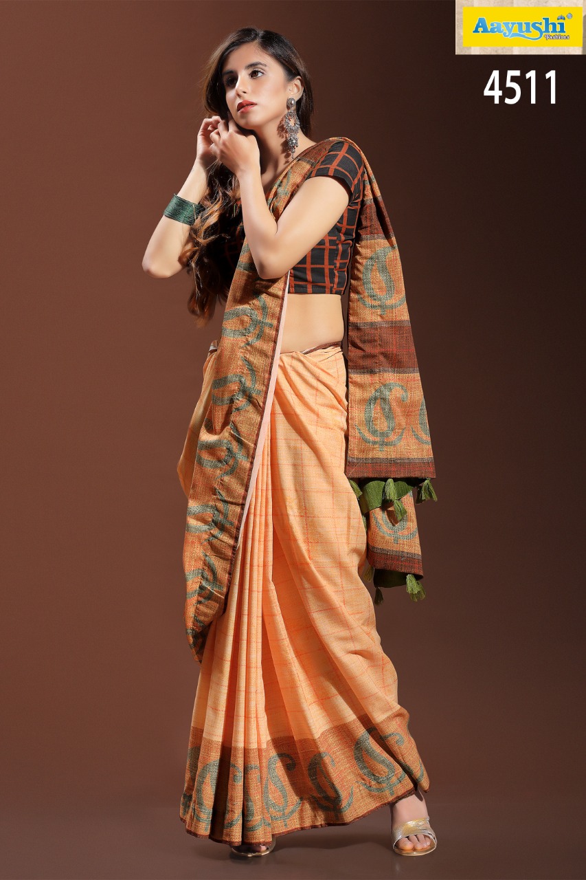 Buy Online Aayushi Series 4509 To 4518 Pure Cotton Printed Desinger Sarees Wholesale Supplier And Dealer India 10 Pcs of Full Catalogue at Wholesale Price. Looking for Aayushi Series 4509 To 4518 Pure Cotton Printed Desinger Sarees Wholesale Supplier And Dealer India Full Catalouge at Best Price? Buy Now Aayushi Series 4509 To 4518 Pure Cotton Printed Desinger Sarees Wholesale Supplier And Dealer India at Wholesale Rate of Rs 12500 with Total 10 Pcs from authroized dealer and supplier of Aayushi fashions Brand. Cost of Each piece is just only Rs 1250 which is very low and affordable price to resale the product in your retail store ,This is Surat based Wholesale Supplier & Dealer of Aayushi fashions Brand. Click on Brand name to Know more about Aayushi fashions Brand's products.Call or Whatsapp on 9898838984 for booking or enquiry