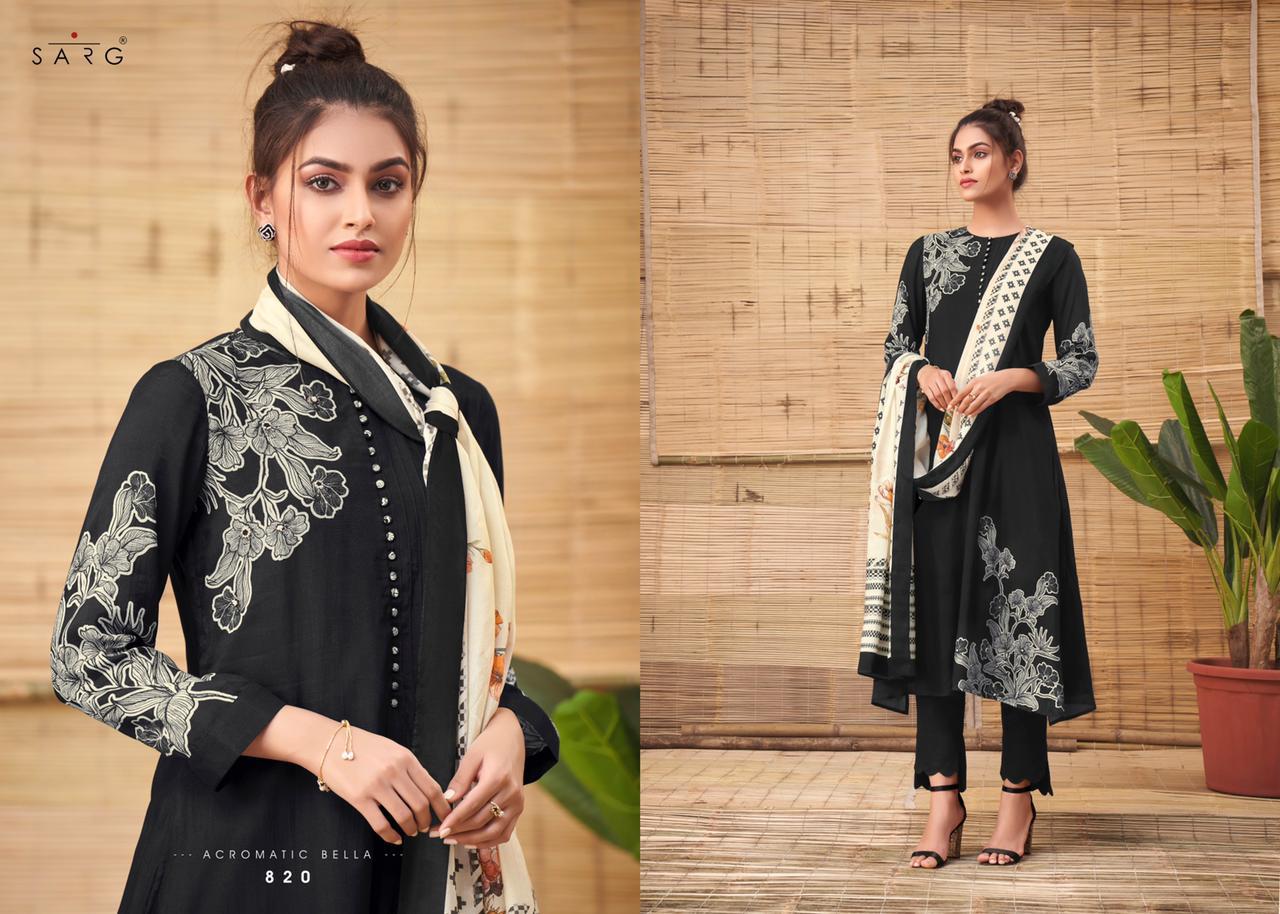 Buy Online Acromatic Bella By Sarg Manufacturer Traders Surat 5 Pcs of Full Catalogue at Wholesale Price. Looking for Acromatic Bella By Sarg Manufacturer Traders Surat Full Catalouge at Best Price? Buy Now Acromatic Bella By Sarg Manufacturer Traders Surat at Wholesale Rate of Rs 8475 with Total 5 Pcs from authroized dealer and supplier of SARG Brand. Cost of Each piece is just only Rs 1695 which is very low and affordable price to resale the product in your retail store ,This is Surat based Wholesale Supplier & Dealer of SARG Brand. Click on Brand name to Know more about SARG Brand's products.Call or Whatsapp on 9898838984 for booking or enquiry