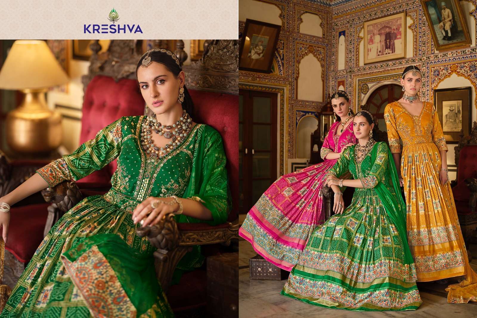 Buy Online Ada by Krishna Smooth silk gown collection manufacturer surat 7 Pcs of Full Catalogue at Wholesale Price. Looking for Ada by Krishna Smooth silk gown collection manufacturer surat Full Catalouge at Best Price? Buy Now Ada by Krishna Smooth silk gown collection manufacturer surat at Wholesale Rate of Rs 55965 with Total 7 Pcs from authroized dealer and supplier of KRESHVA Brand. Cost of Each piece is just only Rs 7995 which is very low and affordable price to resale the product in your retail store ,This is Surat based Wholesale Supplier & Dealer of KRESHVA Brand. Click on Brand name to Know more about KRESHVA Brand's products.Call or Whatsapp on 9898838984 for booking or enquiry