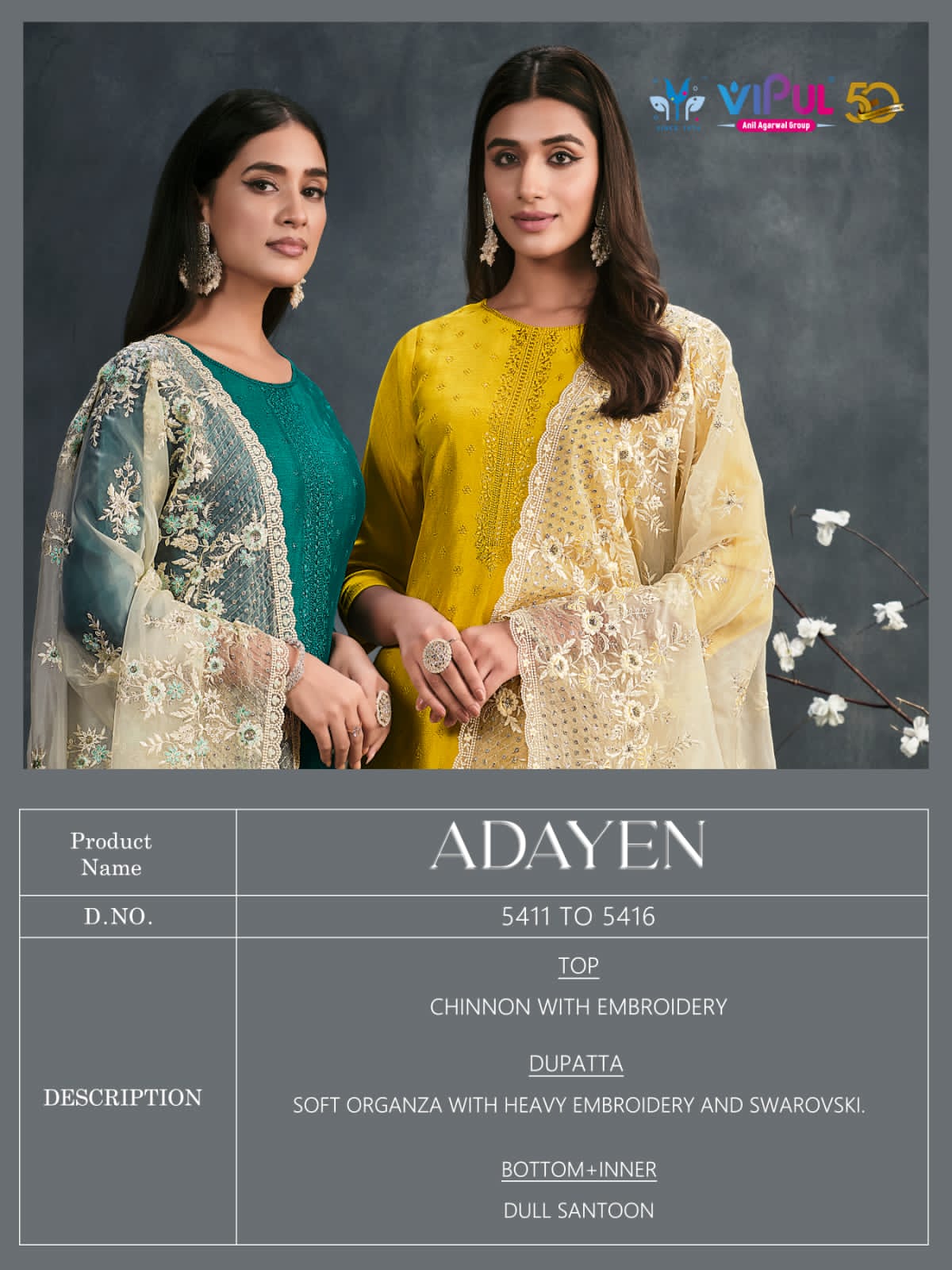 ADAYEN BY VIPUL SUIT 2400+5% GST SINGLE AVAILABLE 100+Singles |