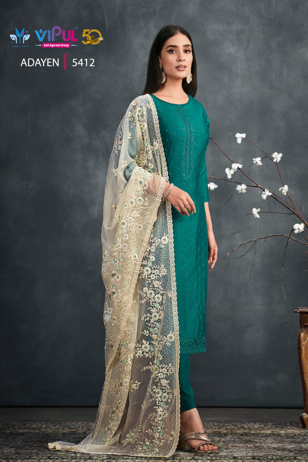 Buy Online Adayen By Vipul Designer Suits Manufacturing Surat 5 Pcs of Full Catalogue at Wholesale Price. Looking for Adayen By Vipul Designer Suits Manufacturing Surat Full Catalouge at Best Price? Buy Now Adayen By Vipul Designer Suits Manufacturing Surat at Wholesale Rate of Rs 12000 with Total 5 Pcs from authroized dealer and supplier of VIPUL Brand. Cost of Each piece is just only Rs 2400 which is very low and affordable price to resale the product in your retail store ,This is Surat based Wholesale Supplier & Dealer of VIPUL Brand. Click on Brand name to Know more about VIPUL Brand's products.Call or Whatsapp on 9898838984 for booking or enquiry