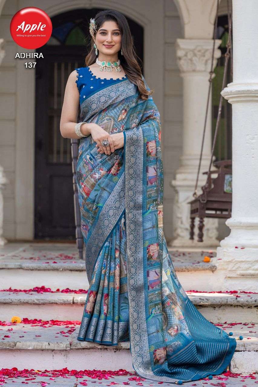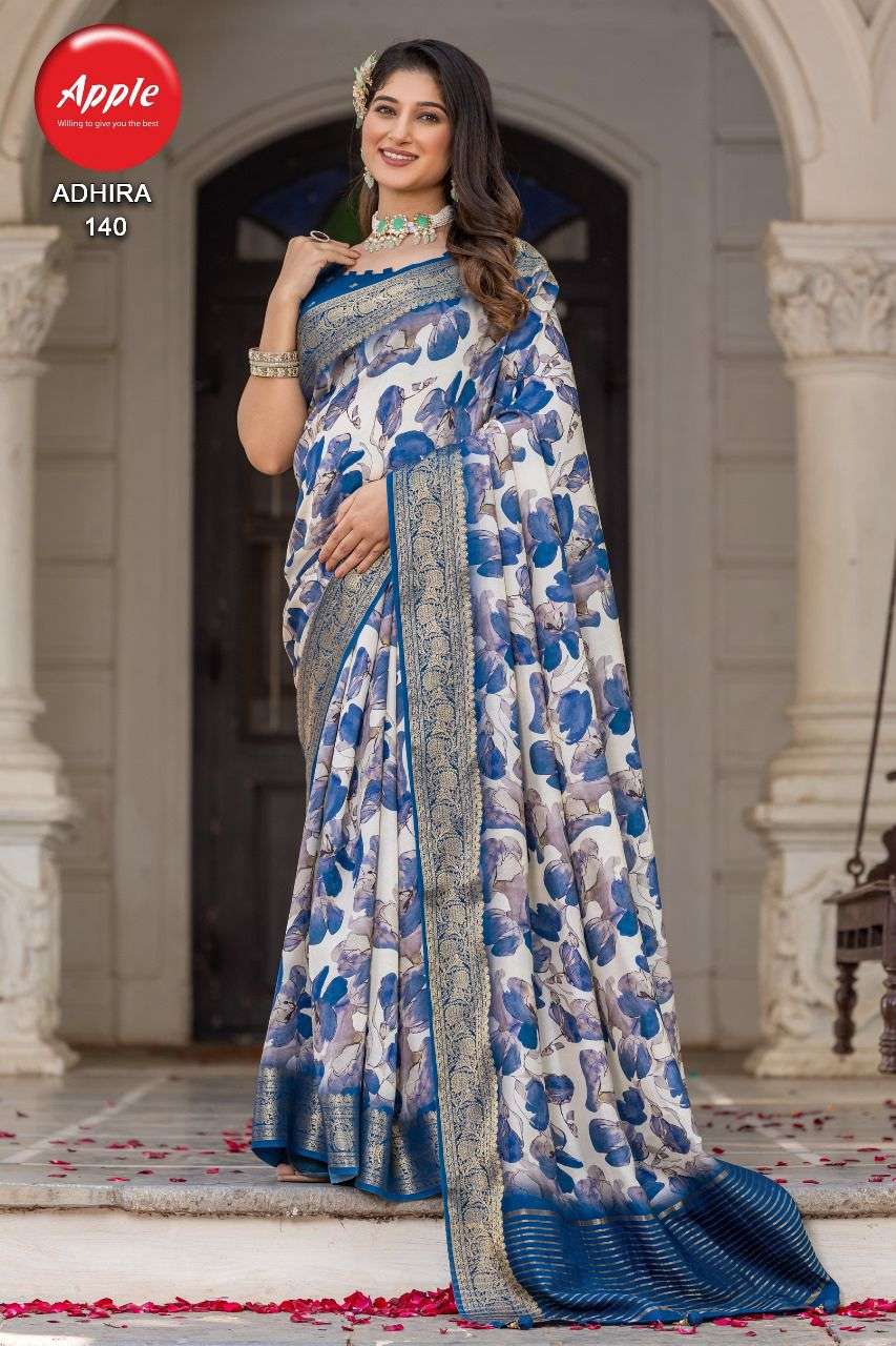 Buy Online Adhira by apple Russian chit pallu Premium Sarees Collection manufacturer surat 41 Pcs of Full Catalogue at Wholesale Price. Looking for Adhira by apple Russian chit pallu Premium Sarees Collection manufacturer surat Full Catalouge at Best Price? Buy Now Adhira by apple Russian chit pallu Premium Sarees Collection manufacturer surat at Wholesale Rate of Rs 69700 with Total 41 Pcs from authroized dealer and supplier of APPLE Brand. Cost of Each piece is just only Rs 1700 which is very low and affordable price to resale the product in your retail store ,This is Surat based Wholesale Supplier & Dealer of APPLE Brand. Click on Brand name to Know more about APPLE Brand's products.Call or Whatsapp on 9898838984 for booking or enquiry