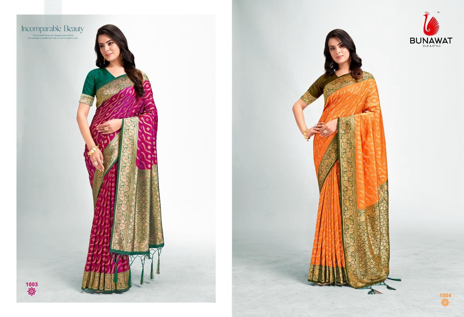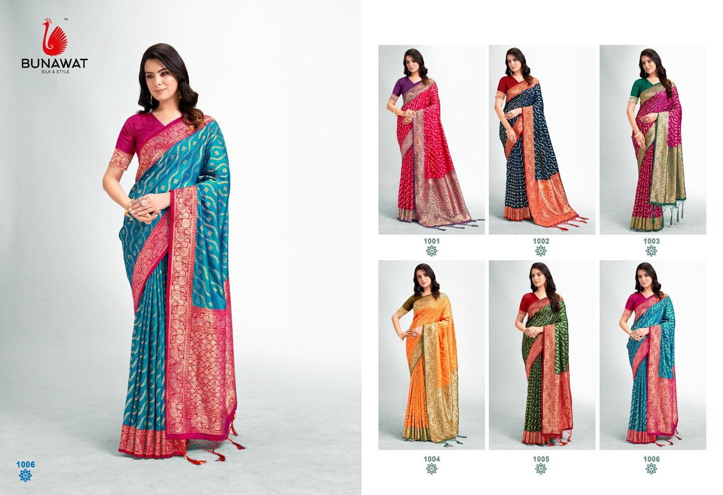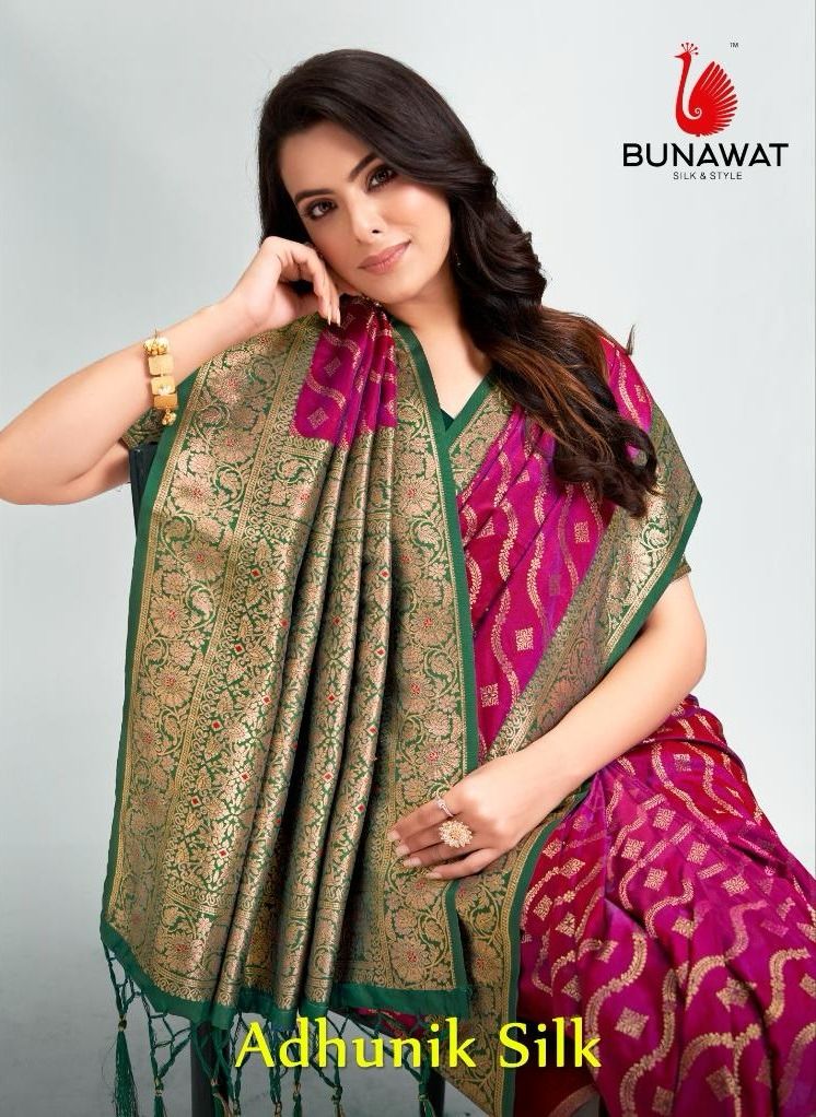 Buy Online Adhunika Silk By Bunawat Silk Saree 6 Pcs of Full Catalogue at Wholesale Price. Looking for Adhunika Silk By Bunawat Silk Saree Full Catalouge at Best Price? Buy Now Adhunika Silk By Bunawat Silk Saree at Wholesale Rate of Rs 9270 with Total 6 Pcs from authroized dealer and supplier of BUNAWAT Brand. Cost of Each piece is just only Rs 1545 which is very low and affordable price to resale the product in your retail store ,This is Surat based Wholesale Supplier & Dealer of BUNAWAT Brand. Click on Brand name to Know more about BUNAWAT Brand's products.Call or Whatsapp on 9898838984 for booking or enquiry