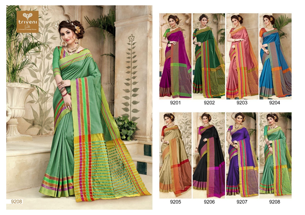 Buy Online Adishree By Triveni 9201 Series Fancy Traditional Wear Saree Collection Wholesaler Surat 8 Pcs of Full Catalogue at Wholesale Price. Looking for Adishree By Triveni 9201 Series Fancy Traditional Wear Saree Collection Wholesaler Surat Full Catalouge at Best Price? Buy Now Adishree By Triveni 9201 Series Fancy Traditional Wear Saree Collection Wholesaler Surat at Wholesale Rate of Rs 3456 with Total 8 Pcs from authroized dealer and supplier of TRIVENI Brand. Cost of Each piece is just only Rs 432 which is very low and affordable price to resale the product in your retail store ,This is Surat based Wholesale Supplier & Dealer of TRIVENI Brand. Click on Brand name to Know more about TRIVENI Brand's products.Call or Whatsapp on 9898838984 for booking or enquiry