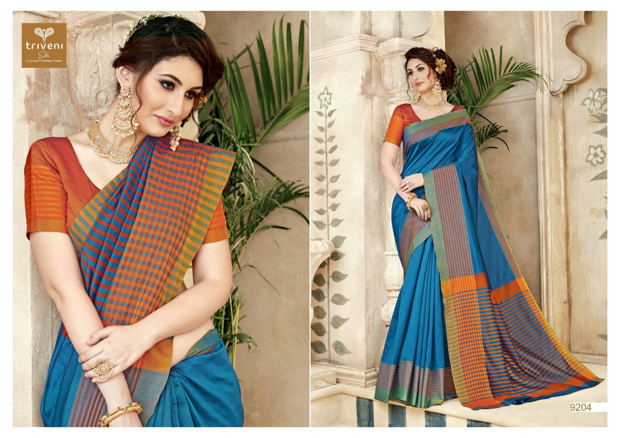 Adishree - Stripes and borders to strike a chord, plain sarees with colourful lines that mark an elegance, the drapes that are an embellishment to the grace of ladies. Check out new collection of 8 sarees by Triveni only at INR 432/-.GST 5% Extra Charge. |